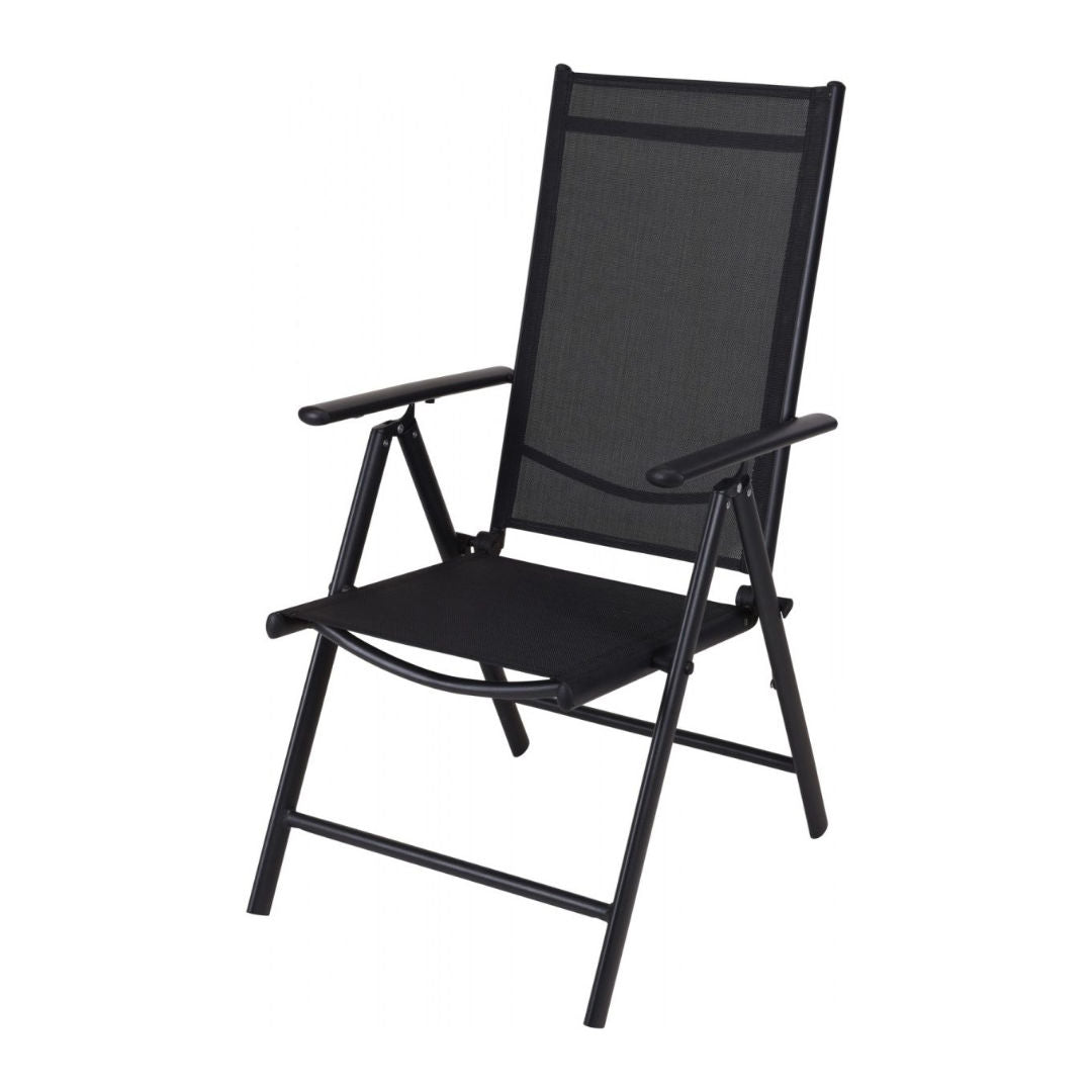 كرسي قابل للطي Camp Master، إطار فولاذي مطلي بمسحوق أسود، قماش أسود