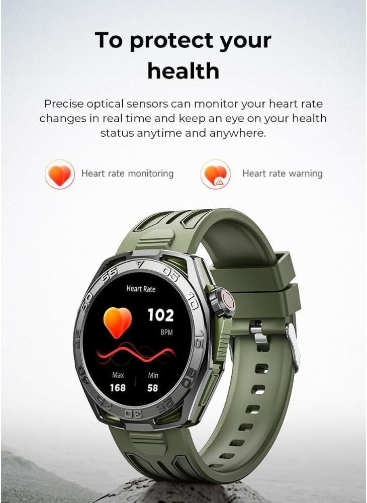 ساعة Telux Vital الذكية، شاشة AMOLED مقاس 1.43 بوصة، بطارية 410 مللي أمبير، مقاومة للماء بمعيار IP68، لون أخضر