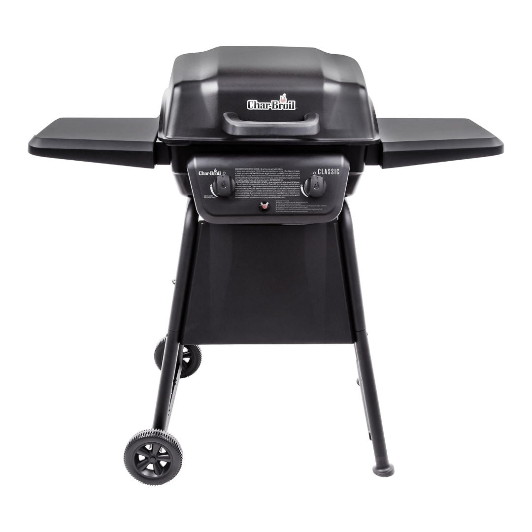 The Char-Broil Classic 2-Burner Gas Grill is designed for home grillers who want solid performance and value. It features two stainless steel burners that deliver 20,000 BTUs of cooking power across a 280 sq-inch porcelain-coated grate, allowing for even heat and minimal sticking. The grill includes a porcelain-coated steel lid and firebox to stand up to the elements, metal side shelves for prep space, a Piezo ignition system for reliable starts, and durable wheels to move it easily. Warranty coverage includes long term protection on key components like the burners and firebox, making this grill both practical and dependable for backyard use.