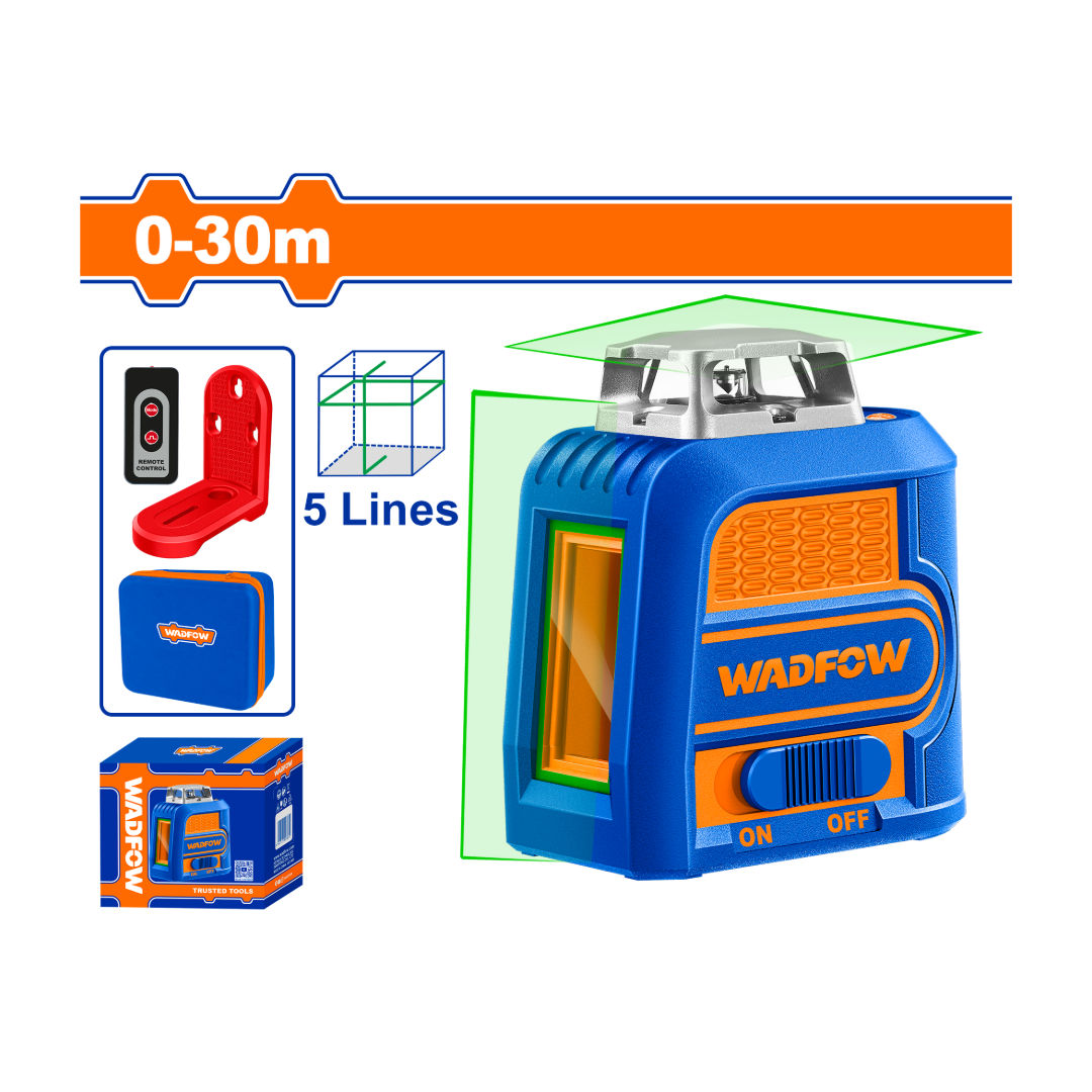 ليزر WADFOW ذاتي التسوية بالخط الأخضر، خطوط أفقية + عمودية بزاوية 360 درجة، نطاق 0~30 متر