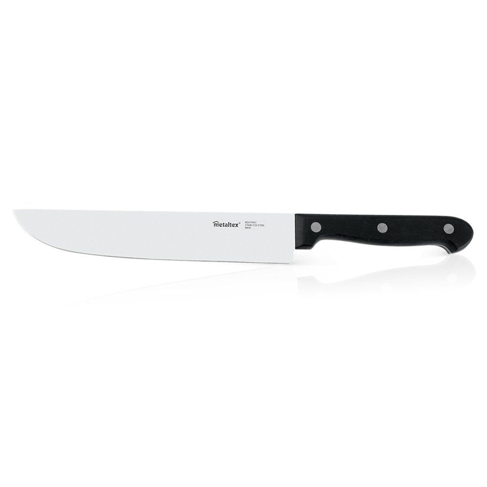 يتميز سكين التقطيع الاحترافي من Metaltex بشفرة حادة من الفولاذ المقاوم للصدأ بطول 28 سم مصممة لتقطيع اللحوم المشوية والدواجن والقطع الكبيرة بدقة. يوفر المقبض المريح قبضة ممتازة وراحة أثناء الاستخدام.