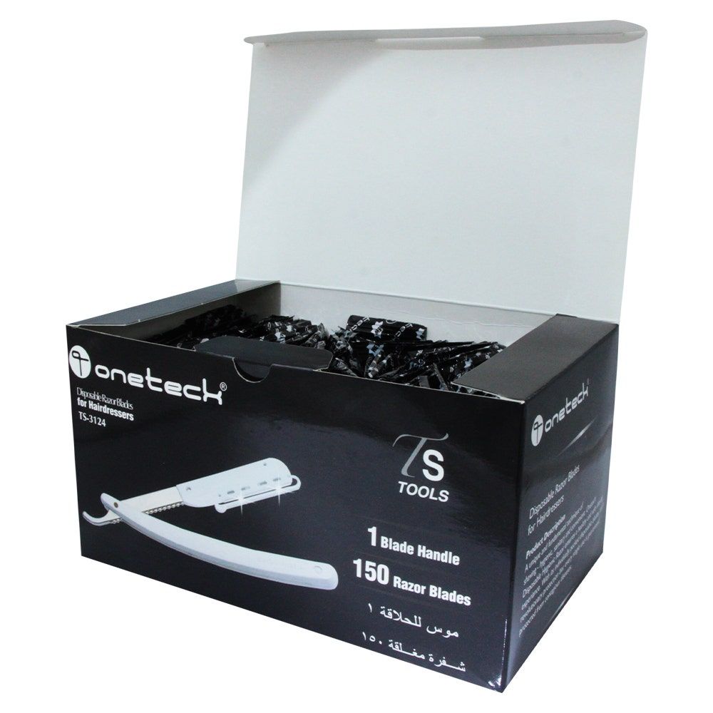 شفرات الحلاقة القابلة للاستخدام مرة واحدة من Onetech لمصففي الشعر. TS-3124.150 شفرات حلاقة ومقبض.