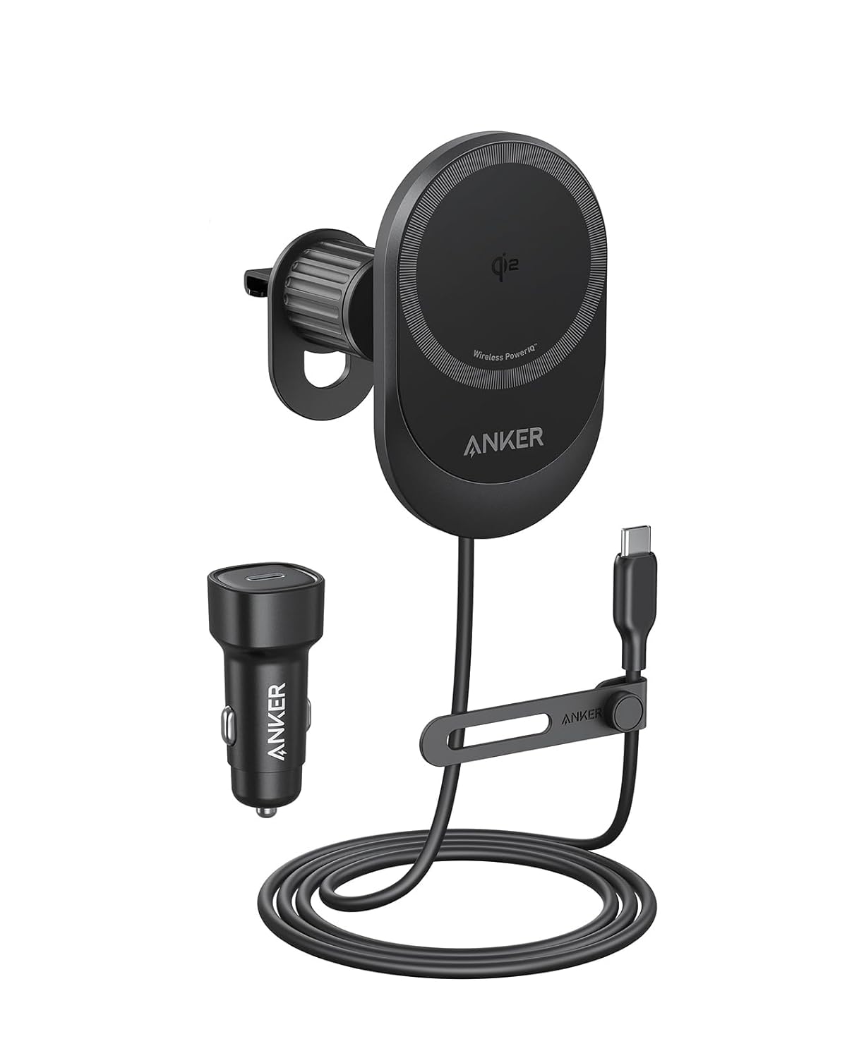 شاحن Anker MagGo اللاسلكي للسيارة مع محول سيارة 25 وات، أسود