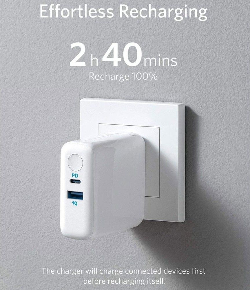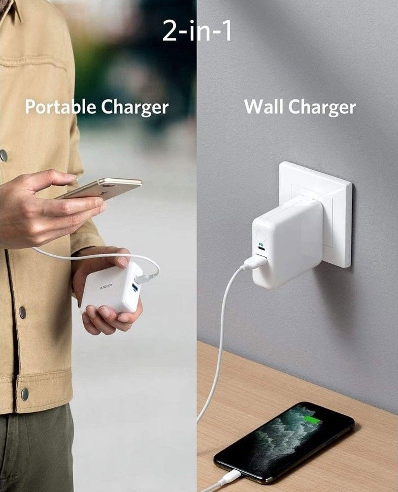 شاحن Anker PowerCore III Fusion + بطارية خارجية 5000 مللي أمبير PD 18 واط، أبيض