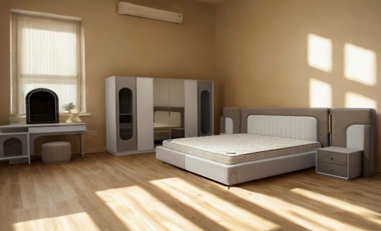 طقم غرفة نوم #MERCAN (سرير كينغ (200*180) +2NS+خزانة ملابس+مرآة+خزانة ملابس+وسادة)