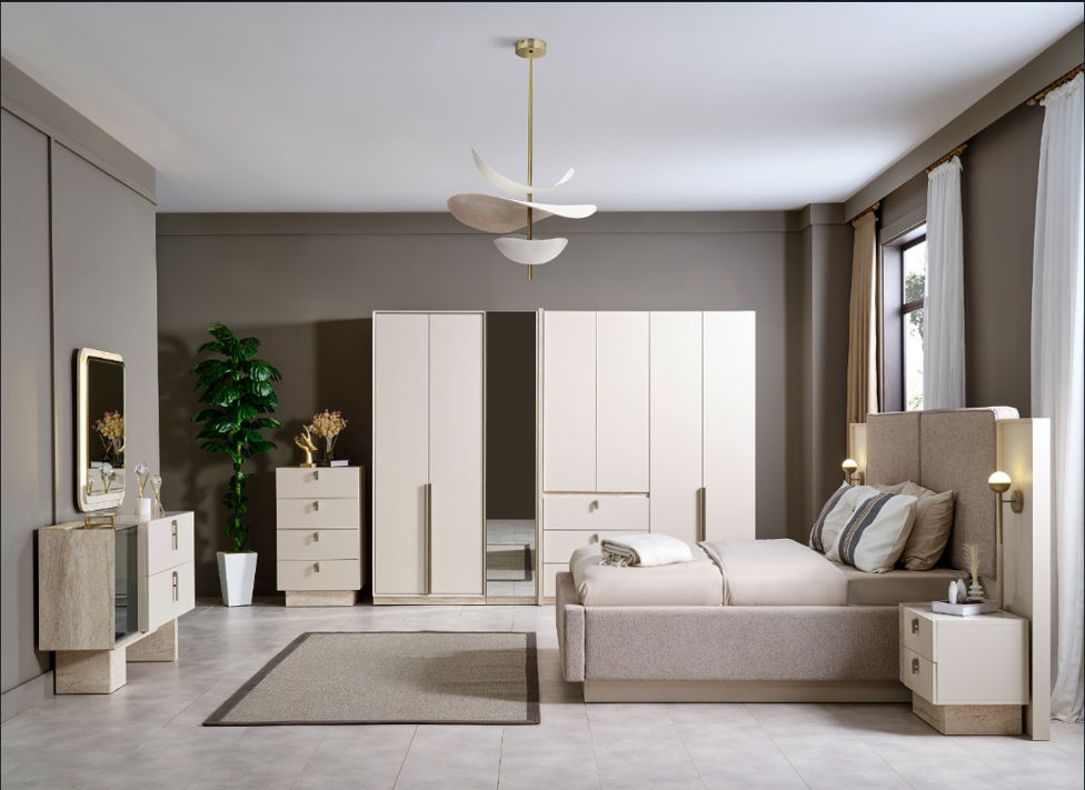 مجموعة غرفة نوم روبي المنجدة بحجم كينغ