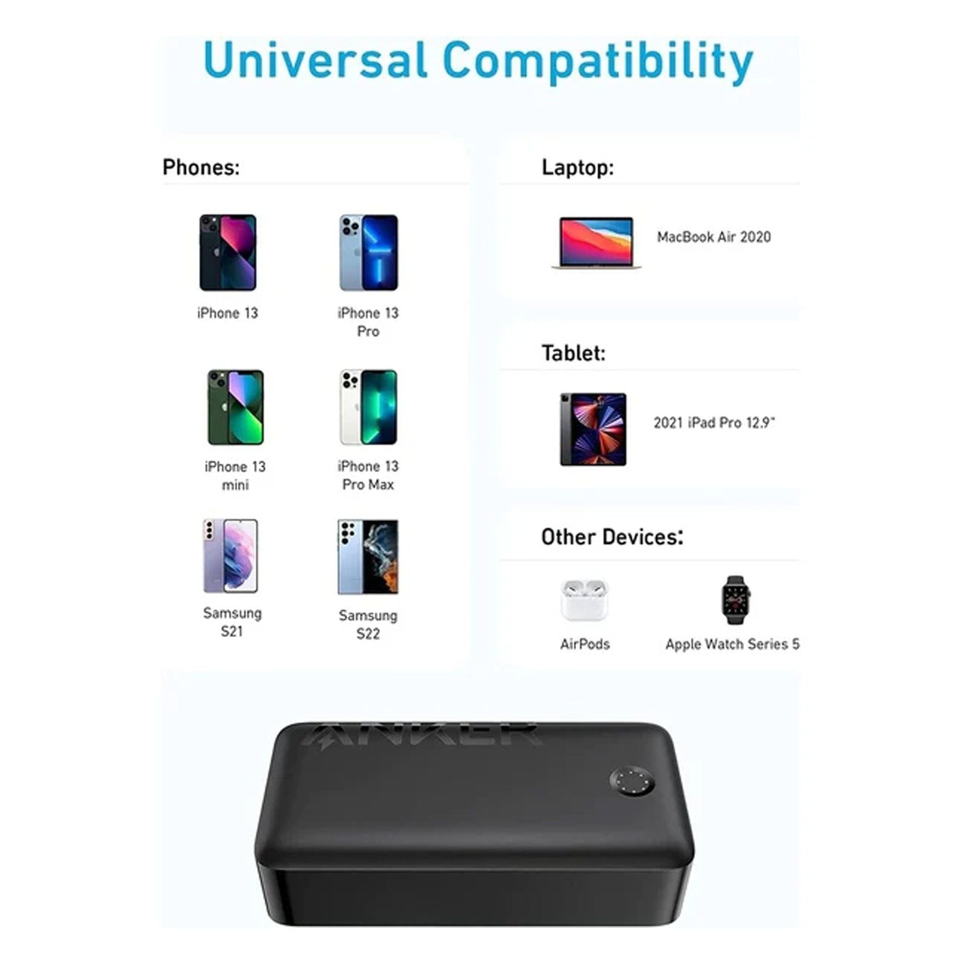 شاحن Anker PowerCore 347 Power Bank 40,000mAh، 30W USB-C + 18W USB-A، أسود