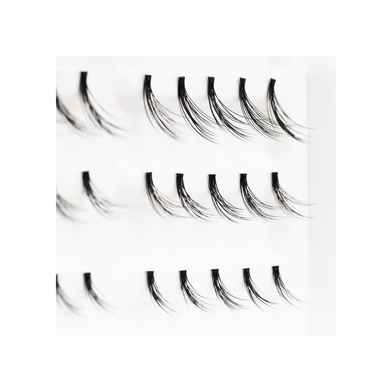 مجموعات متقاطعة من ألياف كثيفة ومتفاوتة الطول لرموش أكثر كثافة بشكل طبيعي. الشريط الرفيع للغاية يحدد خط الرموش بدقة. مع شريط ناعم ومرن لراحة أكبر. نباتي. حشوة مصنوعة من لب قابل للتحلل.