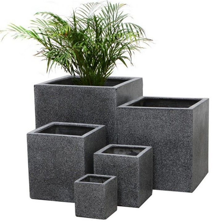 44x44x38 سم، وعاء زهور مربع من الطين المركب يشبه الحجر