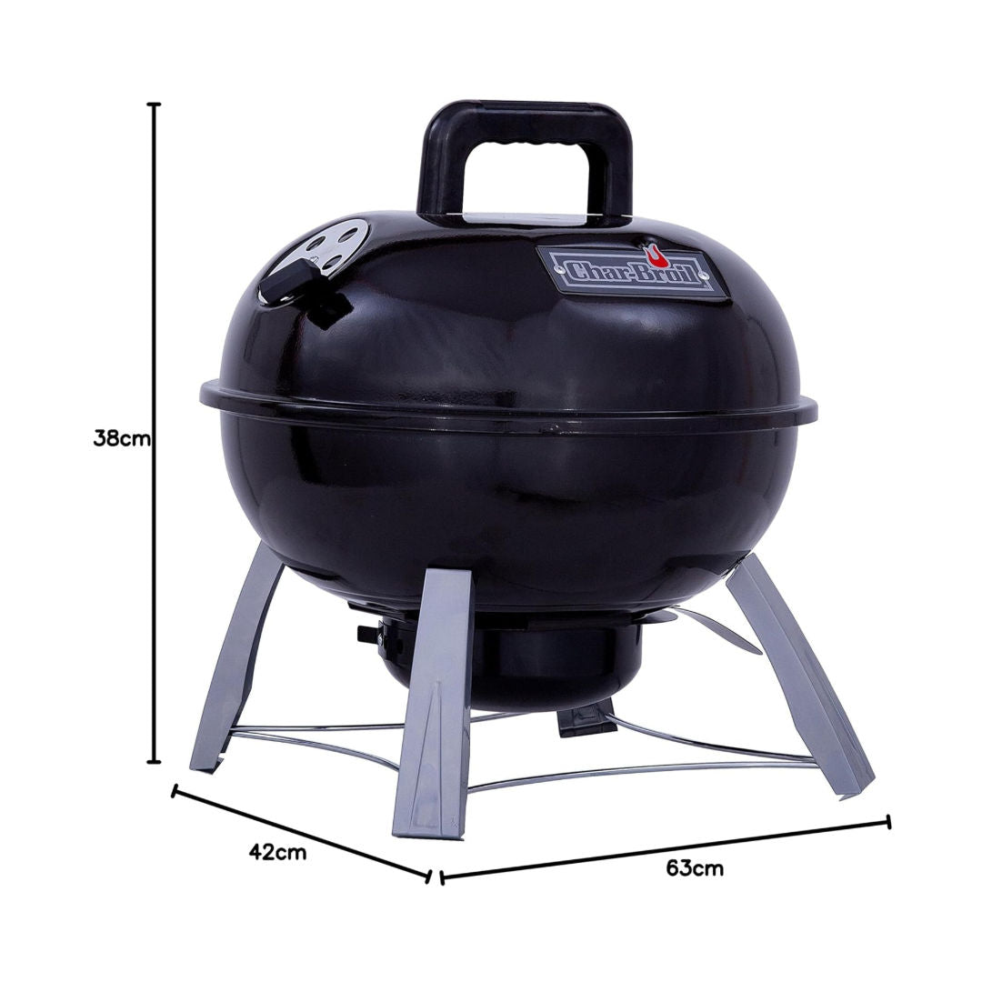 The Char-Broil 14" Charcoal Tabletop Kettle Grill is a compact and portable solution for grilling on the go. Designed for tailgating, camping, picnics, or small patios, this kettle-style charcoal grill delivers classic BBQ flavor in a lightweight, space-saving design. The 150 square inches of cooking surface accommodates up to 6 burgers at once, while the adjustable dampers and chrome-plated grate offer precise heat control and easy cleaning. Built with sturdy legs and a cool-touch lid handle, it’s a practical and efficient grill for outdoor adventures.
