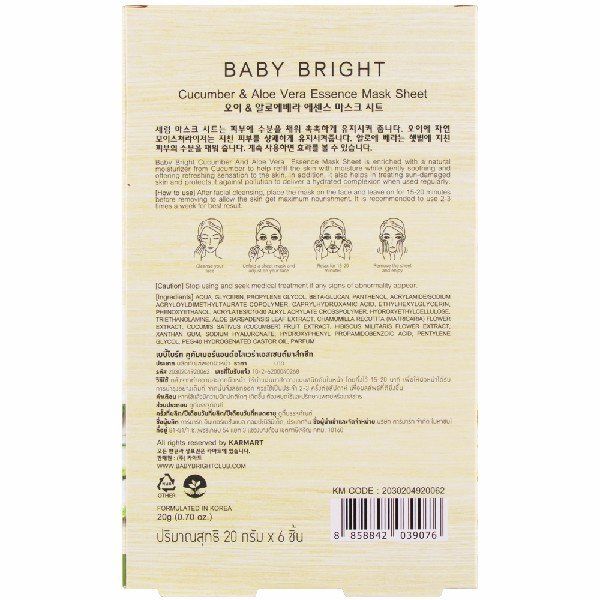 قناع ورقي بخلاصة الخيار والصبار 20 جرام بيبي برايت (للنساء)