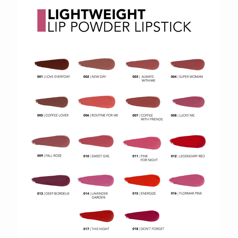 • تركيبة خفيفة للغاية مع لمسة نهائية شبه شفافة غير لامعة.