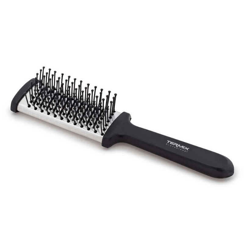 نظرًا لأنها أيضًا فرشاة حرارية، ذات قاعدة من الألومنيوم، استخدمي رذاذ Style. Me Thermo-Protector Shield Spray وقومي بإزالة الرطوبة من الشعر باستخدام مجفف الشعر حتى يجف بنسبة 80٪. اعملي على أجزاء من الشعر وقومي بتشكيل كل خصلة عن طريق وضع الفرشاة المسطحة في منطقة الجذور وتوجيه مجفف الشعر لأسفل أثناء تمرير الفرشاة عبر الشعر.