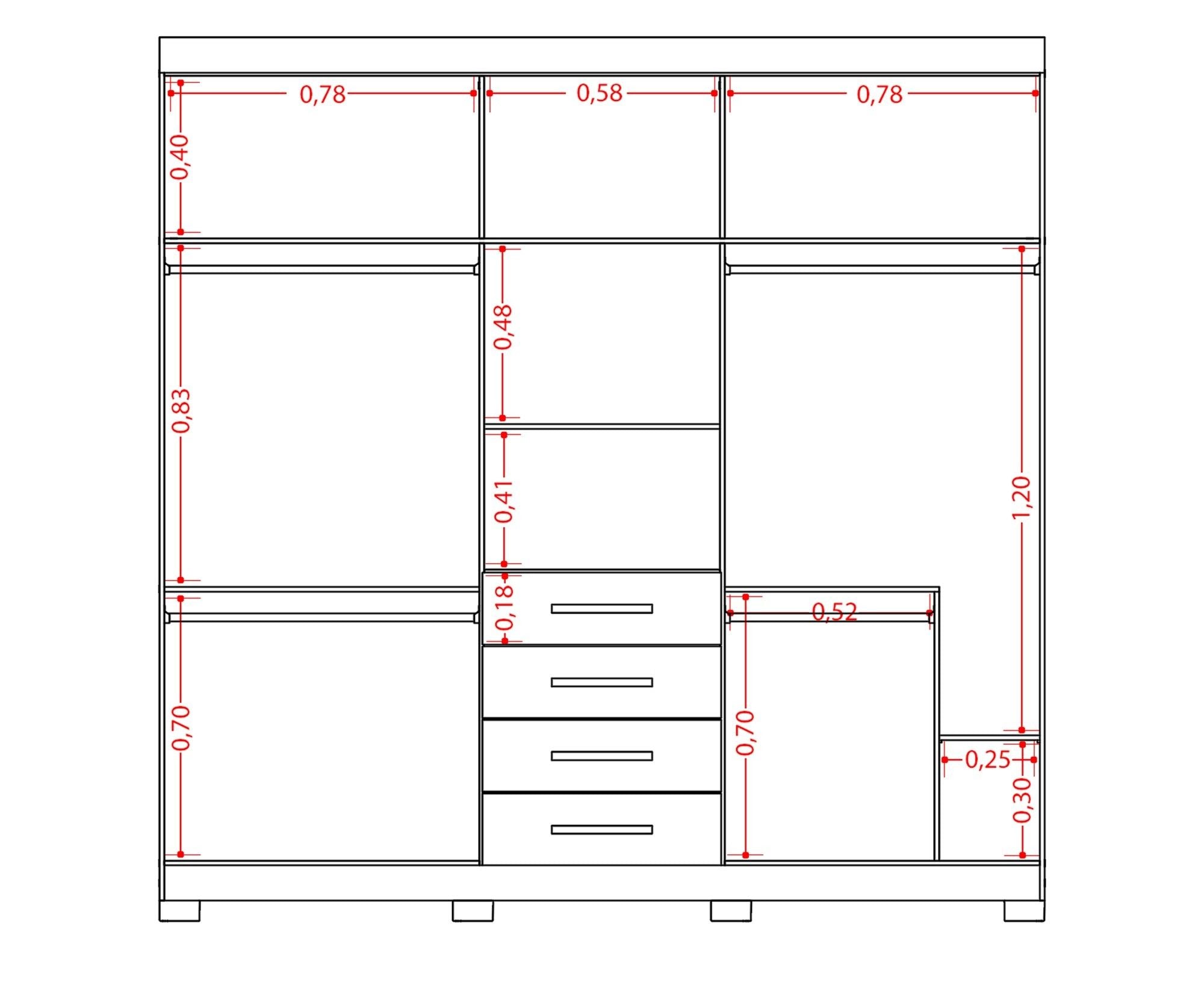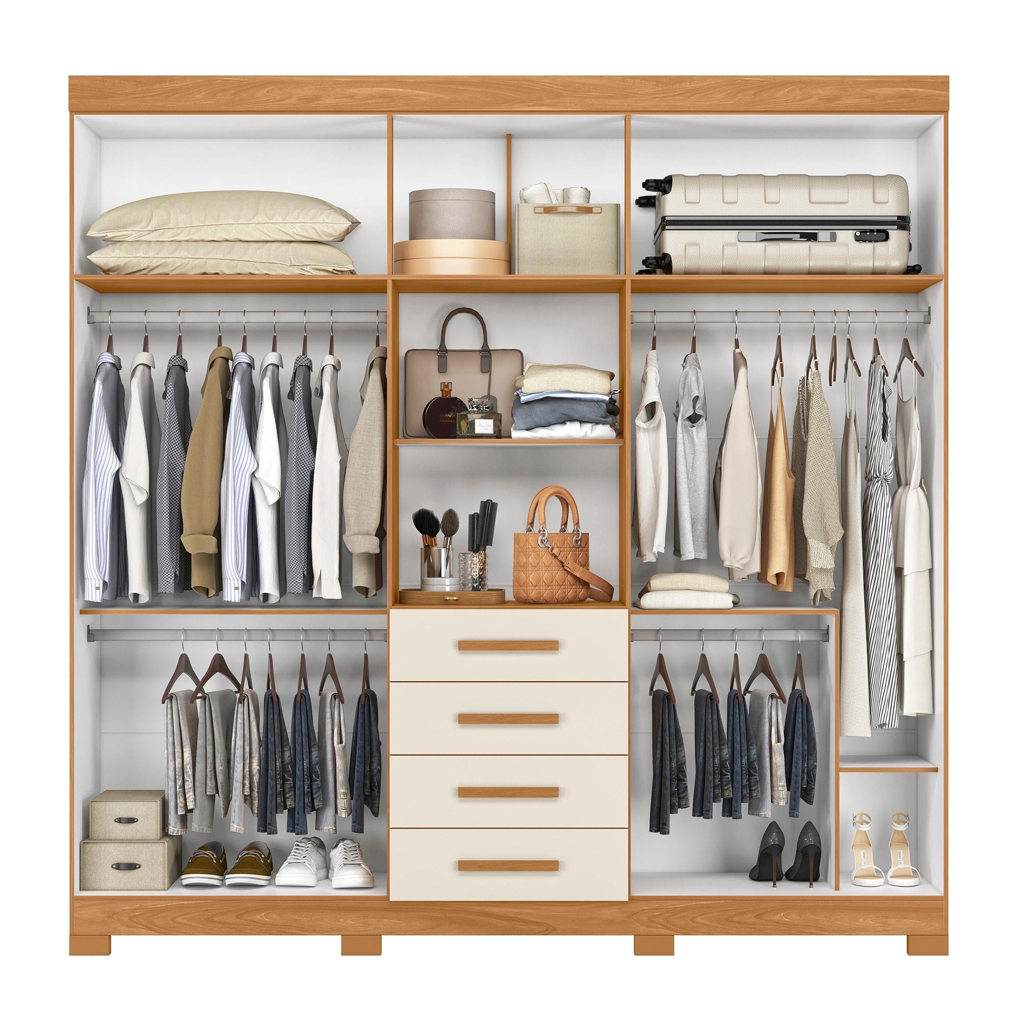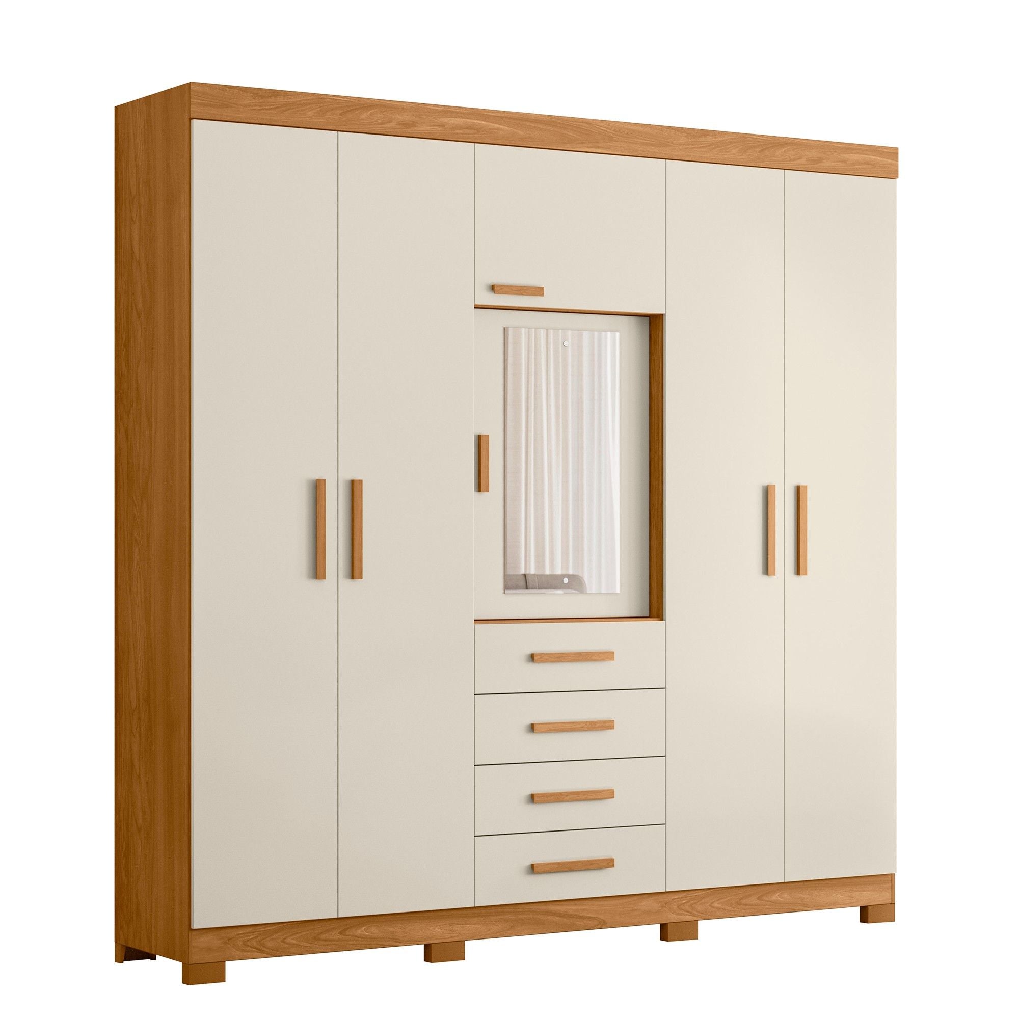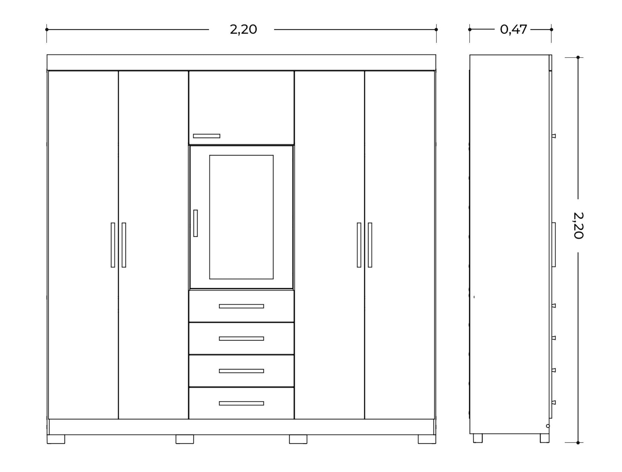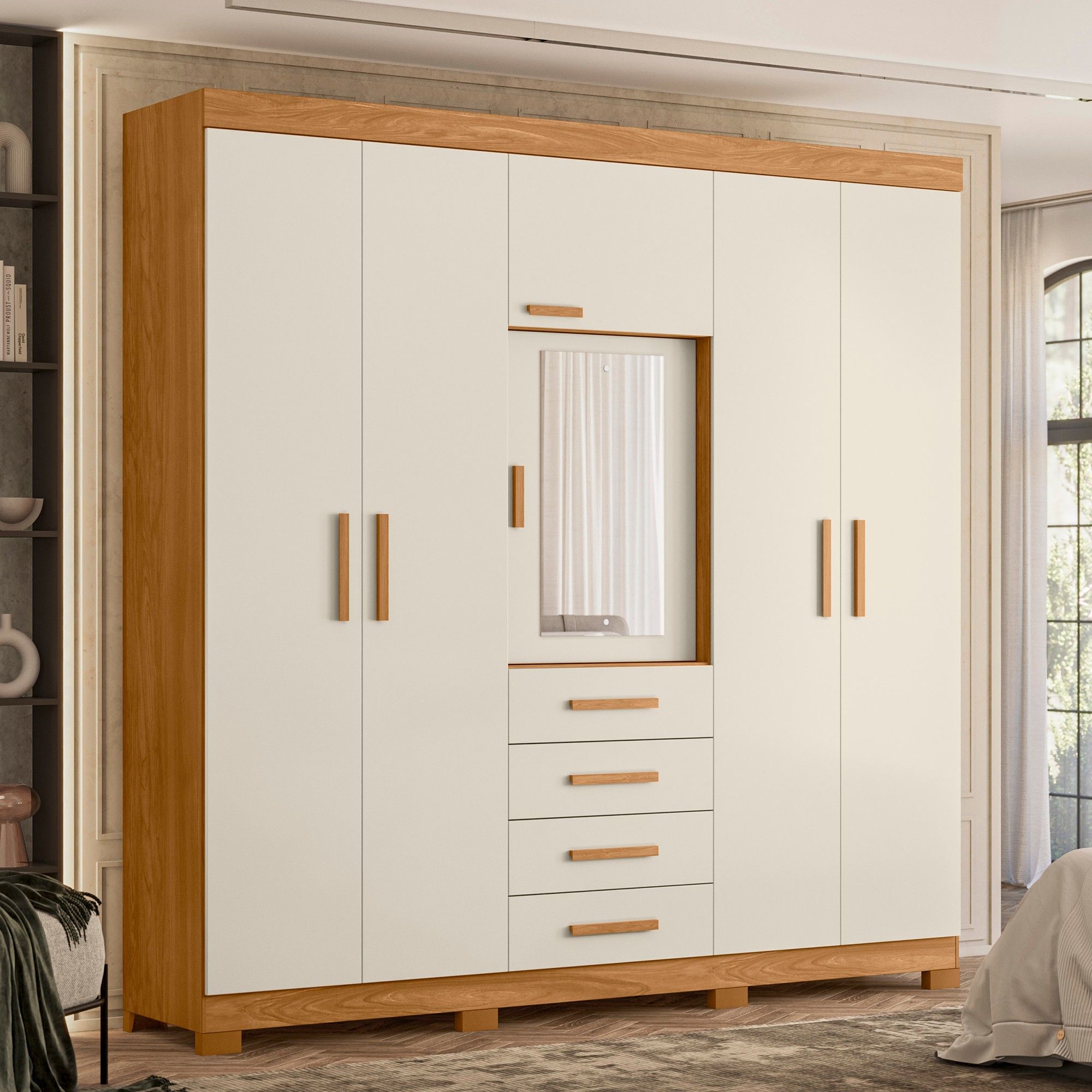 خزانة ملابس Virtus بستة أبواب من خشب البلوط واللون الأبيض المائل للرمادي