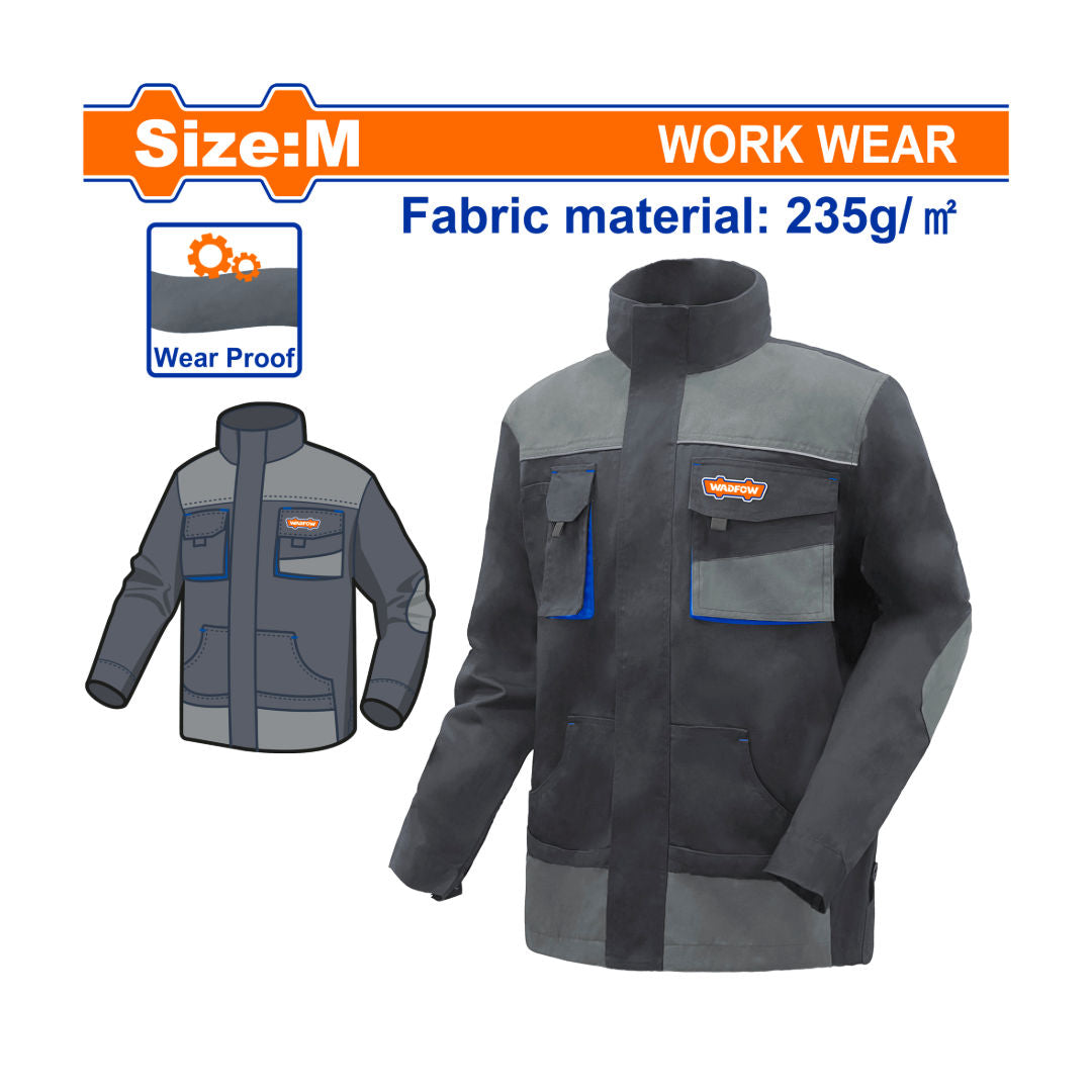 سترة عمل WADFOW، مقاس M، 235 جم من القطن البوليستر، جيوب متعددة، حواف عاكسة، أكمام وأطراف معززة