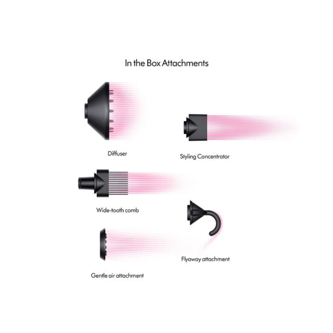 تم تصميم مجفف الشعر Dyson Supersonic HD07 لتجفيف الشعر بسرعة وتصفيفه بدقة مع الحفاظ على لمعانه الطبيعي. يعمل بمحرك Dyson الرقمي V9، ويوفر تدفق هواء عالي السرعة وتحكم ذكي في الحرارة لمنع التلف الناتج عن الحرارة الشديدة.