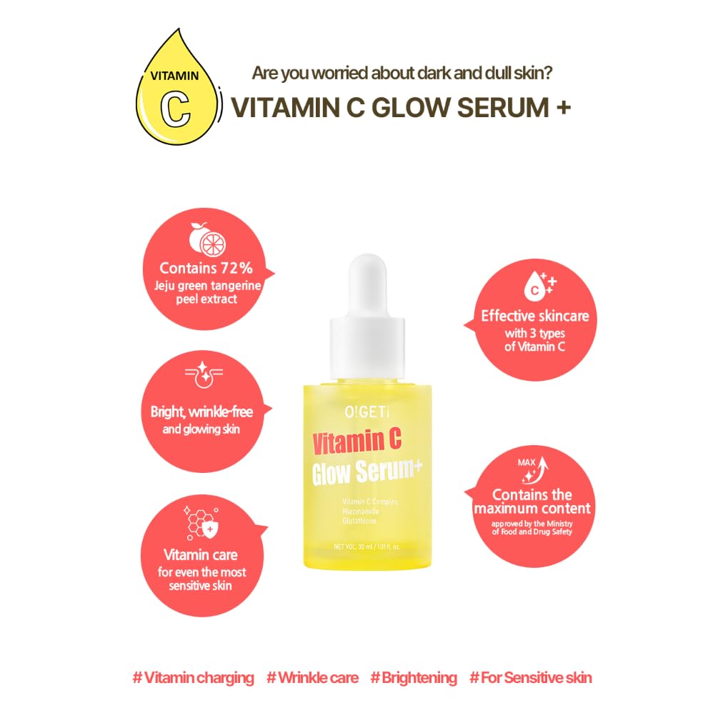 O!GETi فيتامين C جلو سيروم بلس، سيروم مرطب ومفتيح للبشرة، 30 مل