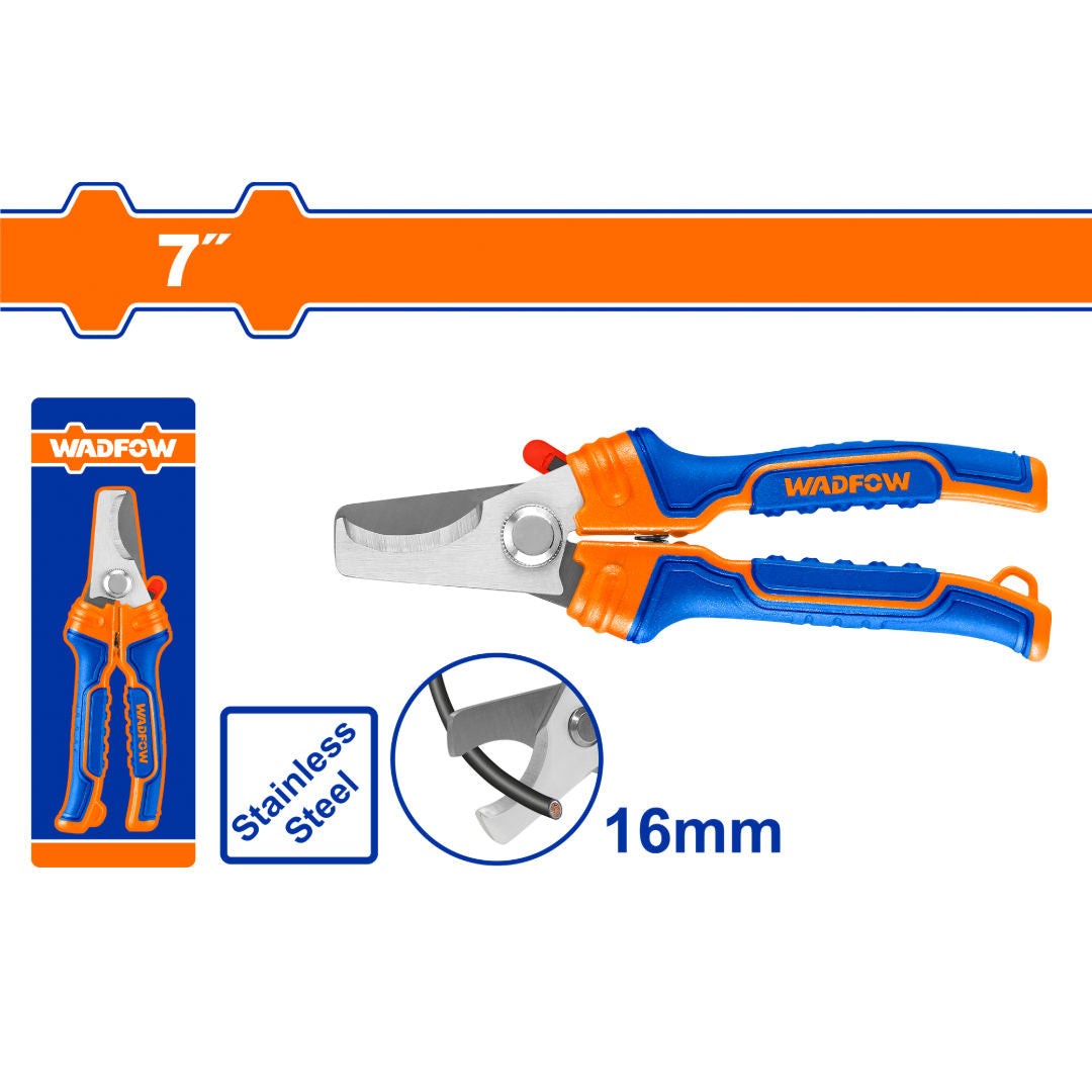 قاطع كابلات شديد التحمل من WADFOW، 7 بوصات، فولاذ مقاوم للصدأ، يقطع حتى قطر 16 مم