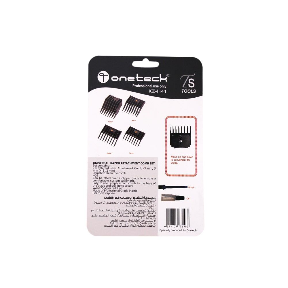 ملحق شفرة حلاقة عالمي محتويات مجموعة أمشاط: - 4 أمشاط بأحجام مختلفة (3 مم، 6 مم، 9 مم و 12 مم)
