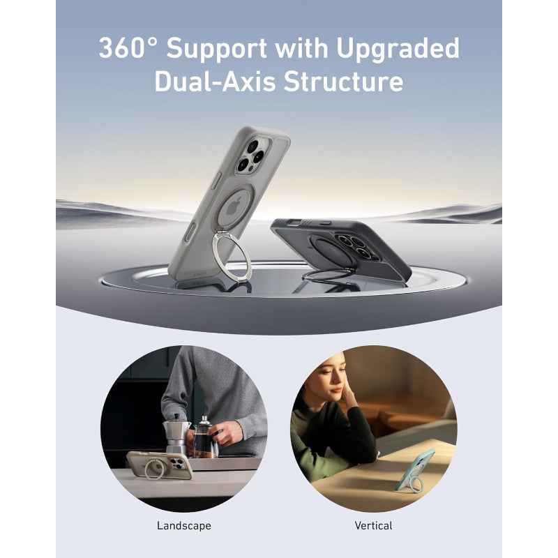 حافظة Anker iPhone 16 مغناطيسية شفافة مع حامل حلقي 360 درجة، أسود