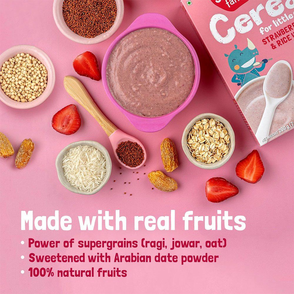 حبوب الإفطار الفورية من Slurrp Farm: أرز الراغي والفراولة مع الحليب