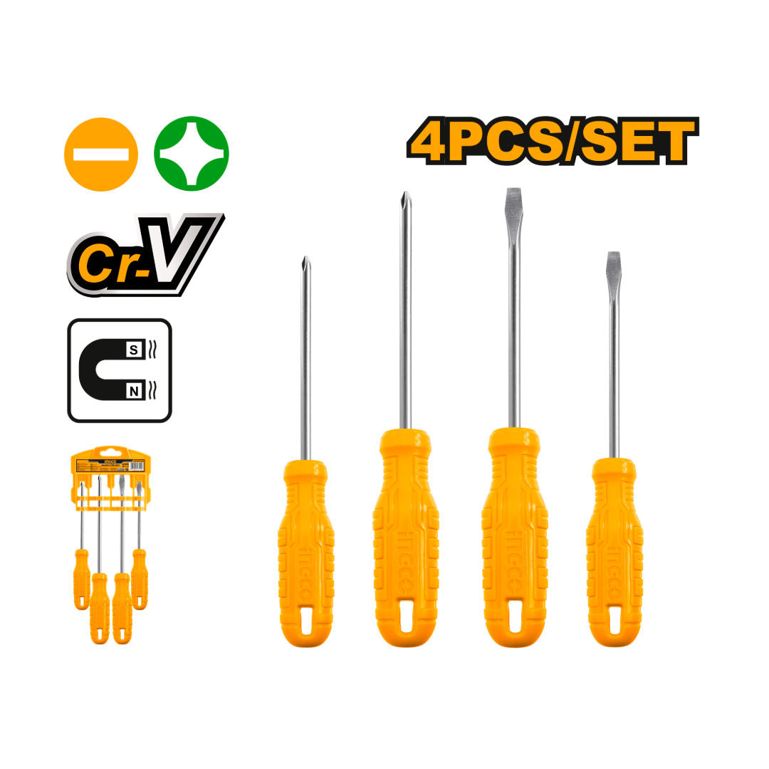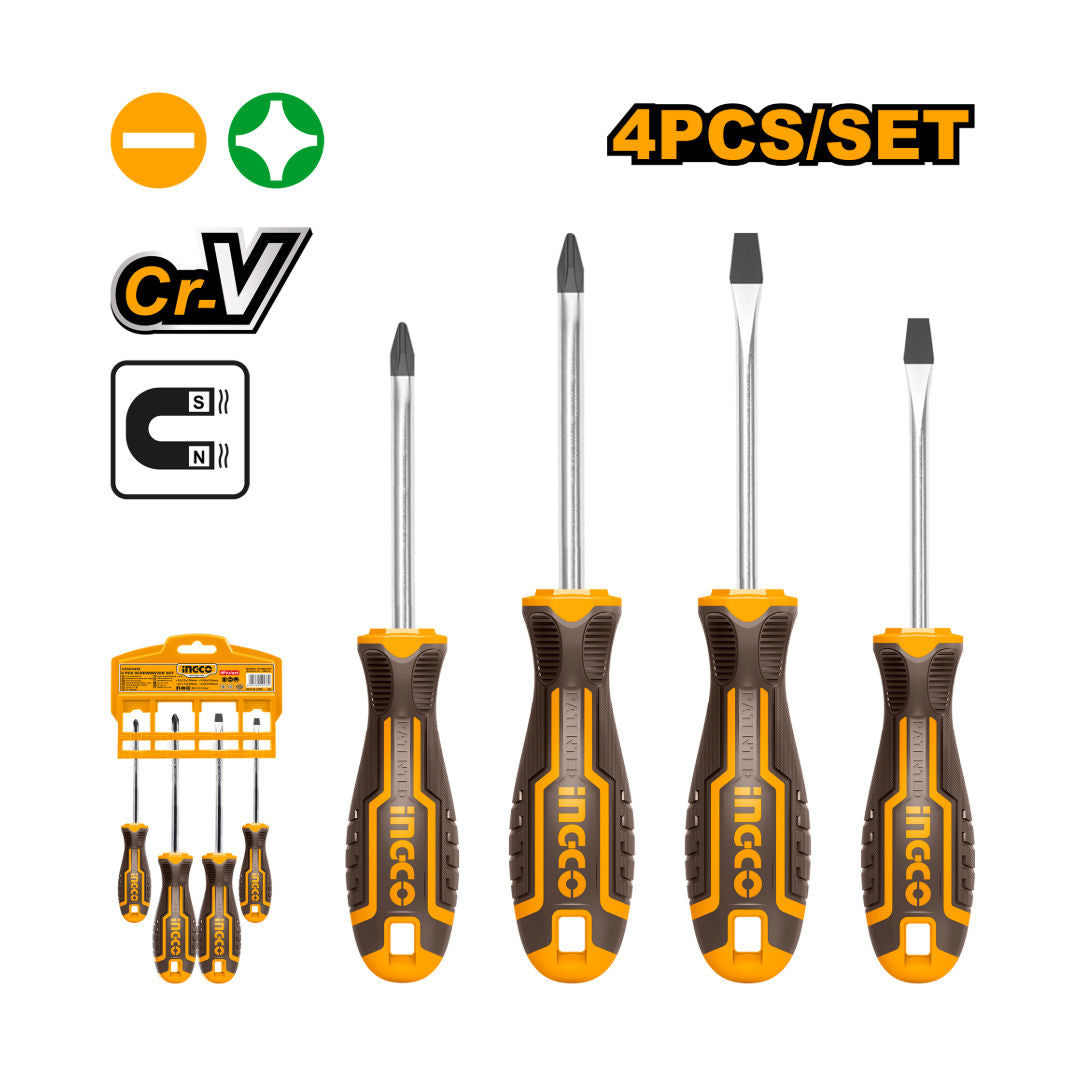 INGCO – مجموعة مفكات براغي 4 قطع (CR-V، مقبض جديد)