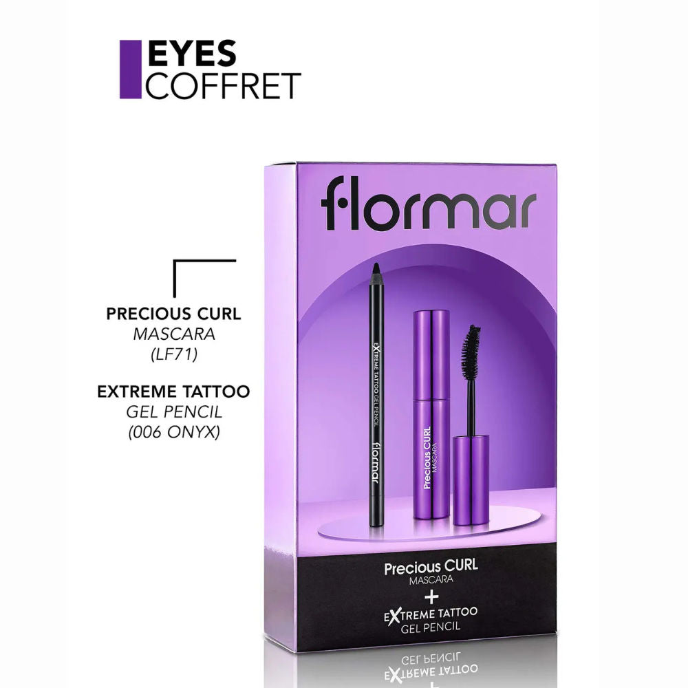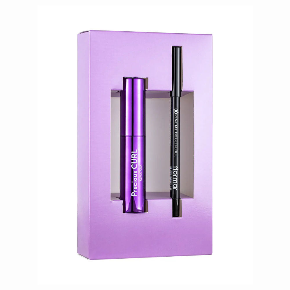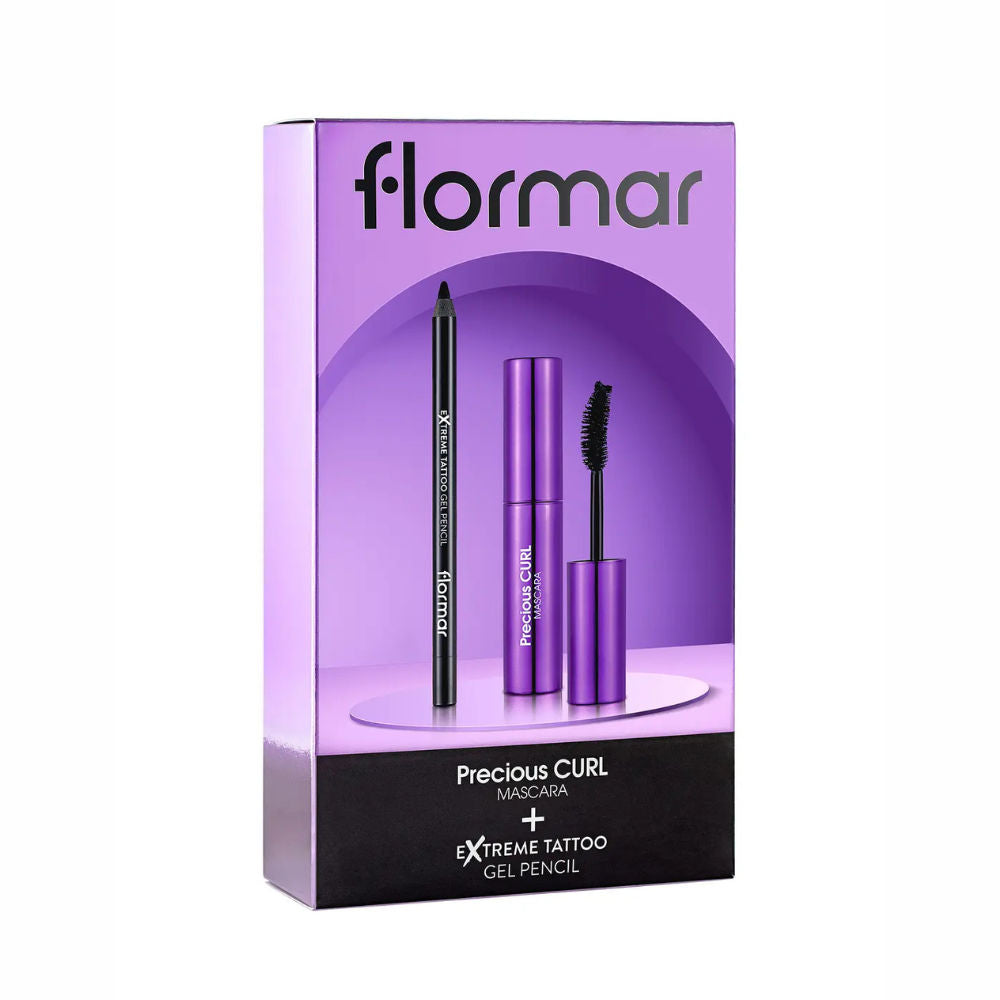 - ثنائي مكياج العيون من فلورمار – يتضمن ماسكارا بريشوس كيرل إنتنس فوليوم آند كيرل وقلم جل إكستريم تاتو لعيون جذابة وجريئة.