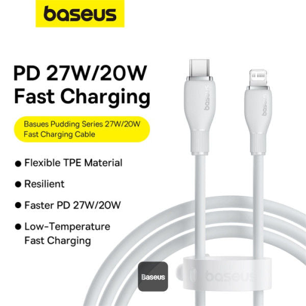 كابل شحن سريع من سلسلة Baseus Pudding من النوع C إلى Lightning 20 وات، 1.2 متر، أبيض لامع