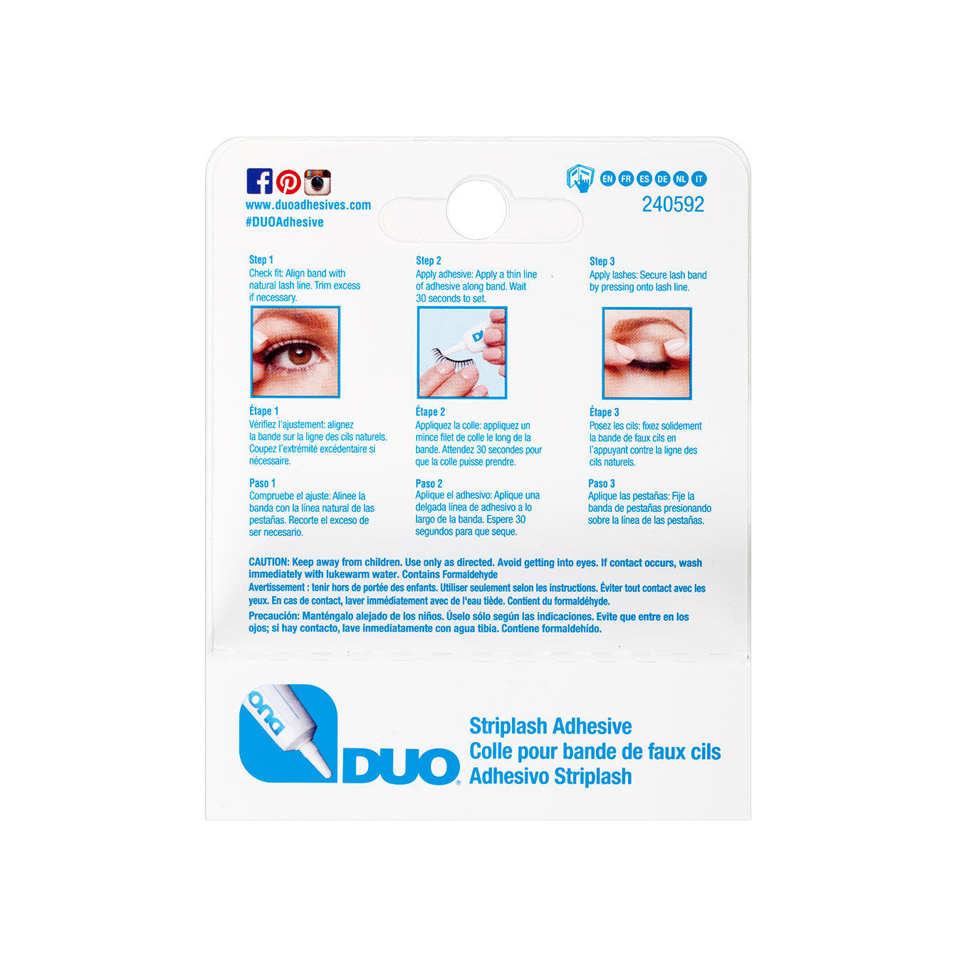 DUO Striplash Adhesive هو لاصق رموش مصنوع من مادة اللاتكس، تم تصميمه ليتم ارتداؤه طوال اليوم مع الرموش الصناعية، ويمكن استخدامه أيضًا لتطبيق الرموش الفردية. يجف DUO Striplash Adhesive بشكل شفاف بعد التطبيق.