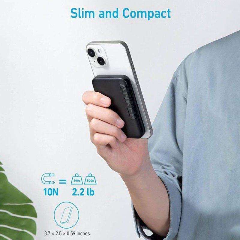 شاحن لاسلكي Anker 321 PowerCore MagGo 5000mAh، أسود