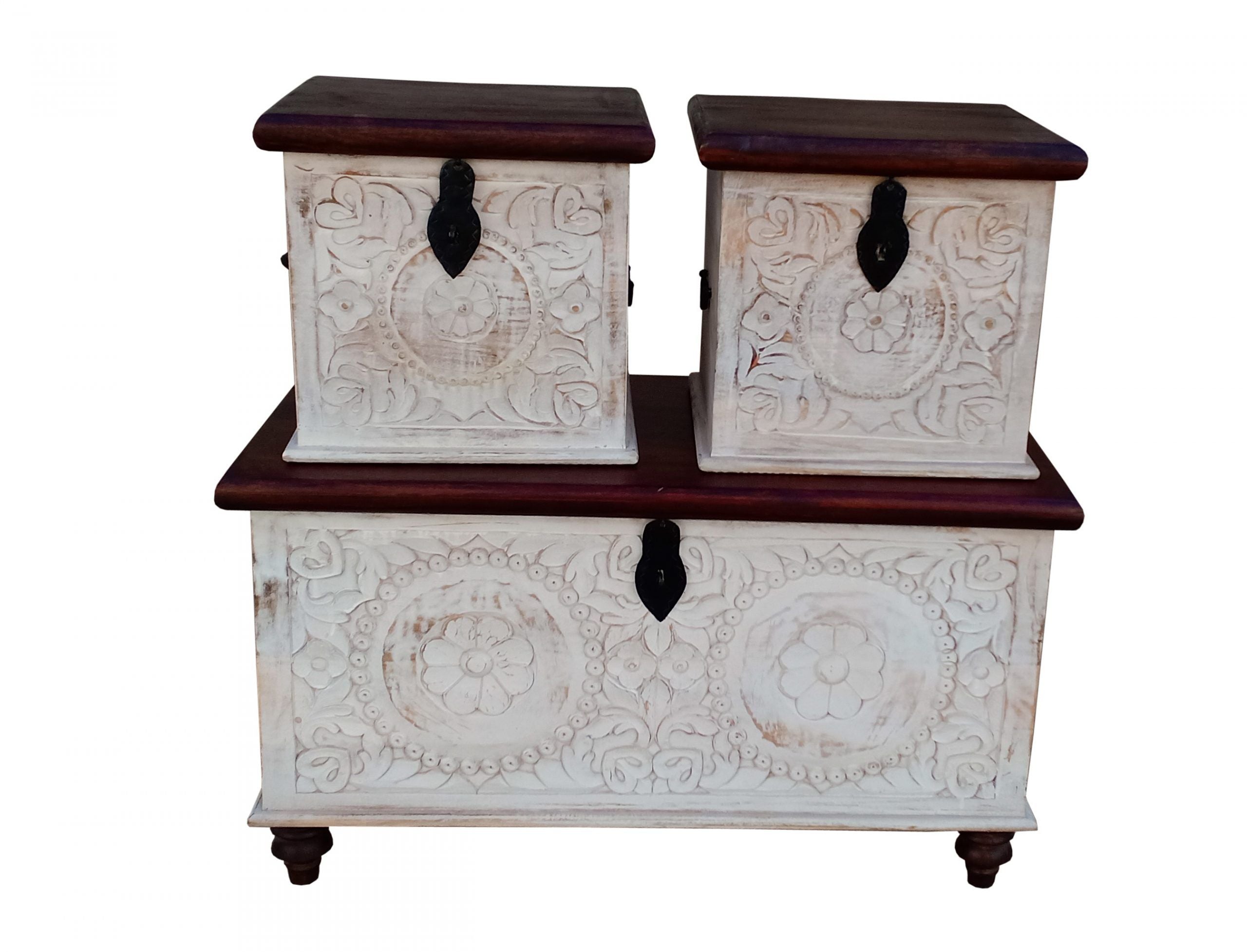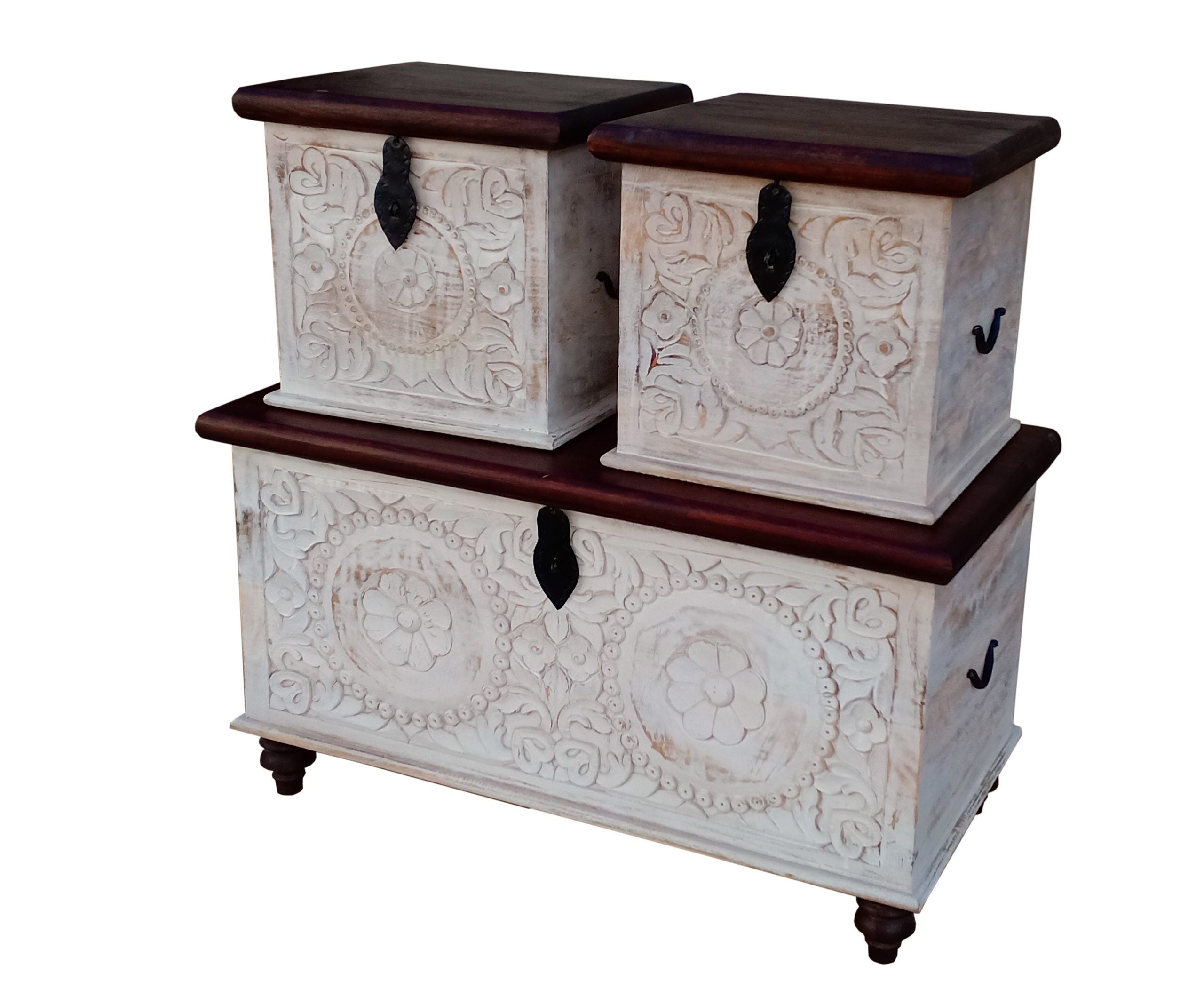 مجموعة من 3 خزانات ذات لمسات بيضاء طبيعية #KA3522