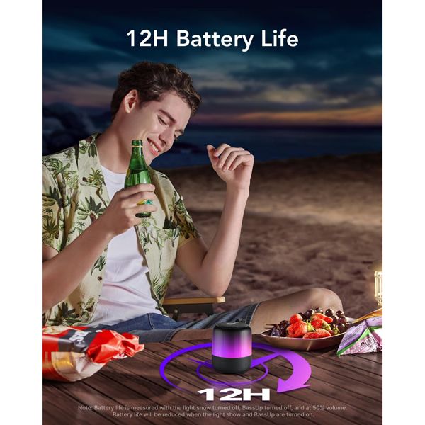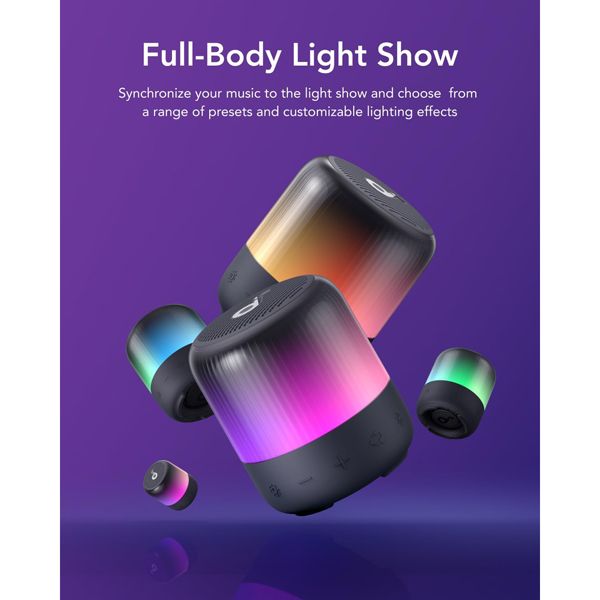 مكبر صوت Bluetooth محمول Soundcore Mini 4 مع صوت وأضواء 360 درجة، 8 وات، أسود