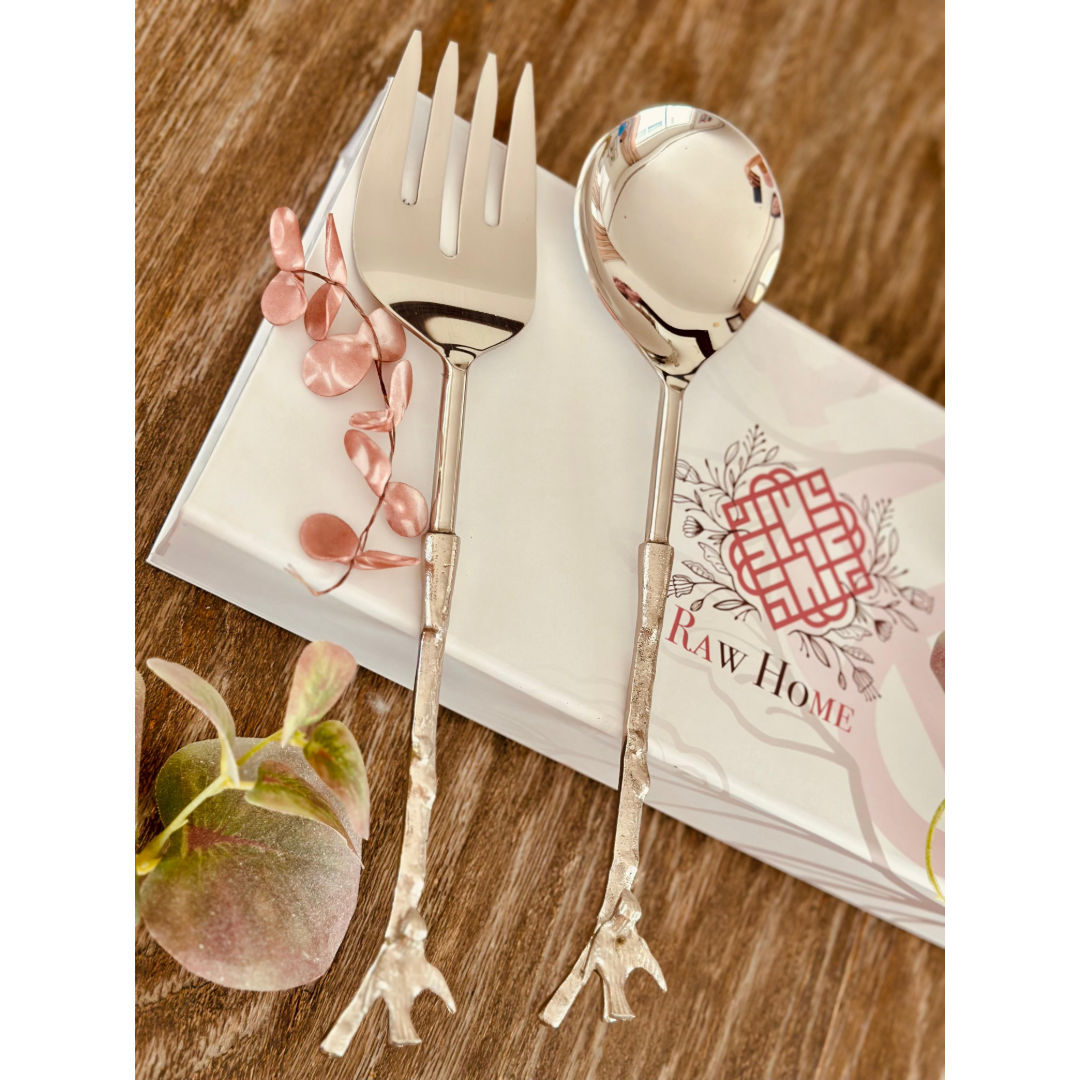 المنزل الخام - مجموعة الطيور / ملعقة وشوكة التقديم