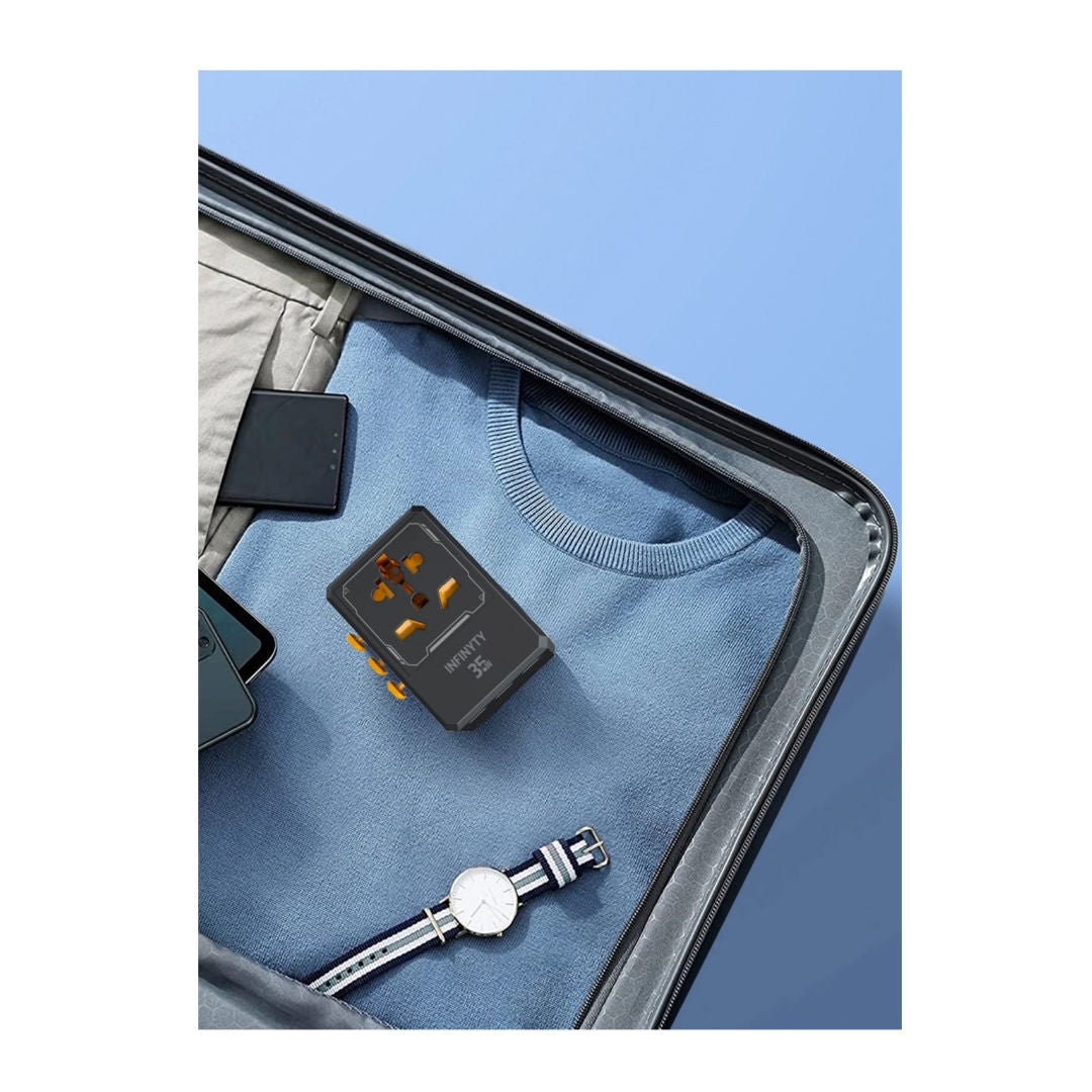 محول سفر عالمي Infinyty Y127-C PD35W Atlas 35، أسود