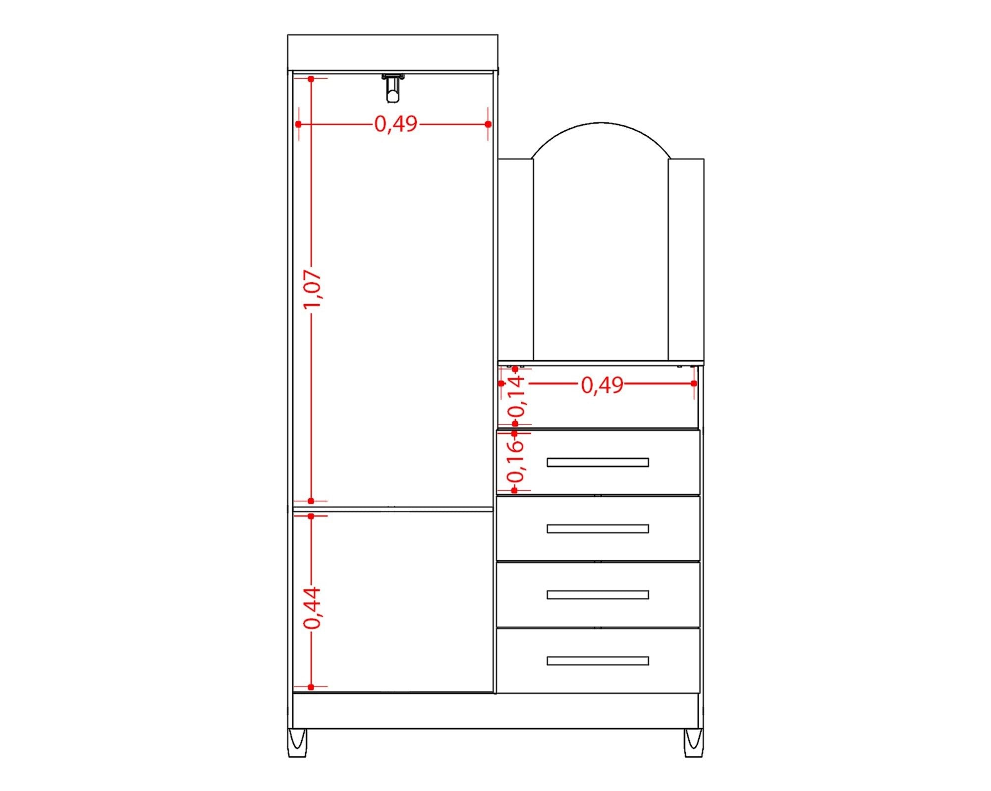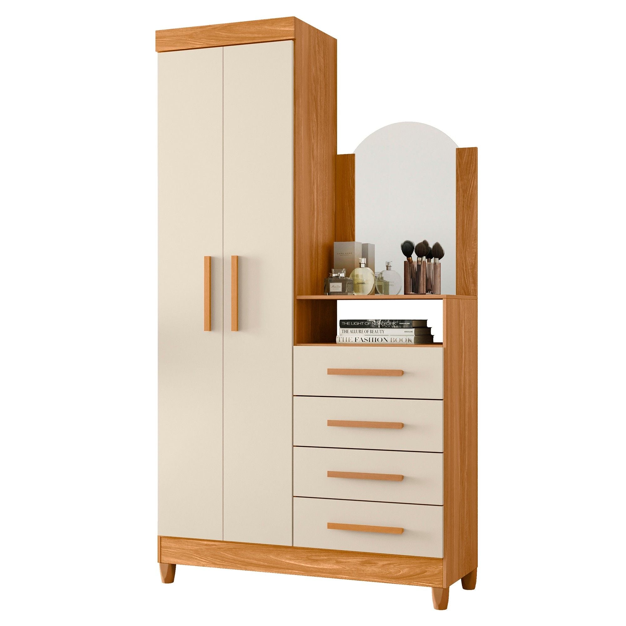 خزانة ملابس ببابين #CAPRI-8495-228 (9732)، مع خزانة صغيرة/مرآة/4 أدراج، اللون: بلوط/أبيض مائل للرمادي