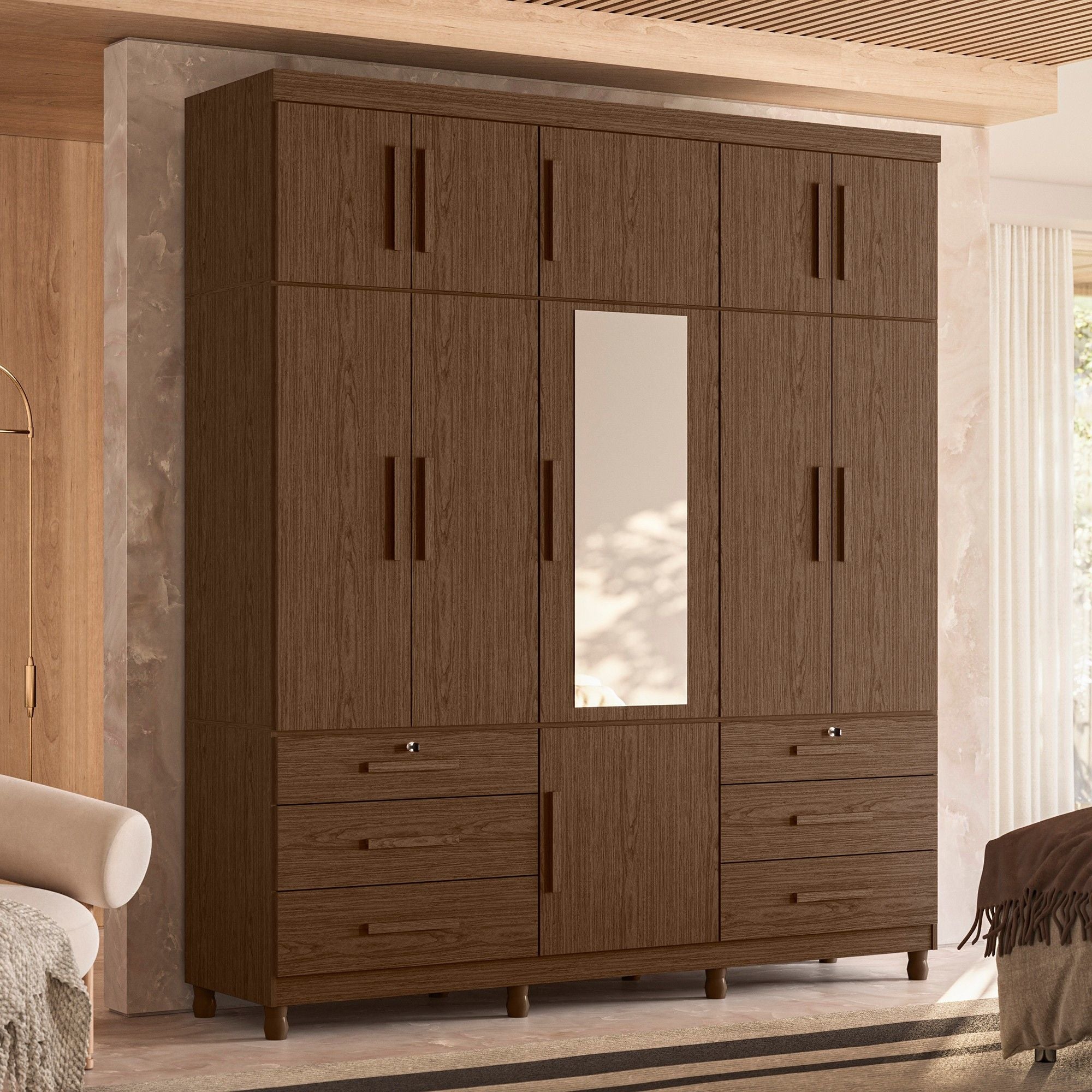 خزانة ملابس بـ 11 باب #TRITON-8415-294 (6229)، مع مرآة/6 أدراج، اللون: بلس كوكو مات