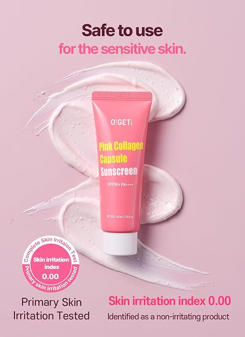 O!GETi واقي الشمس بالكولاجين الوردي SPF50+ PA++++، مرطب، يحسن لون البشرة ويحمي من الأشعة فوق البنفسجية