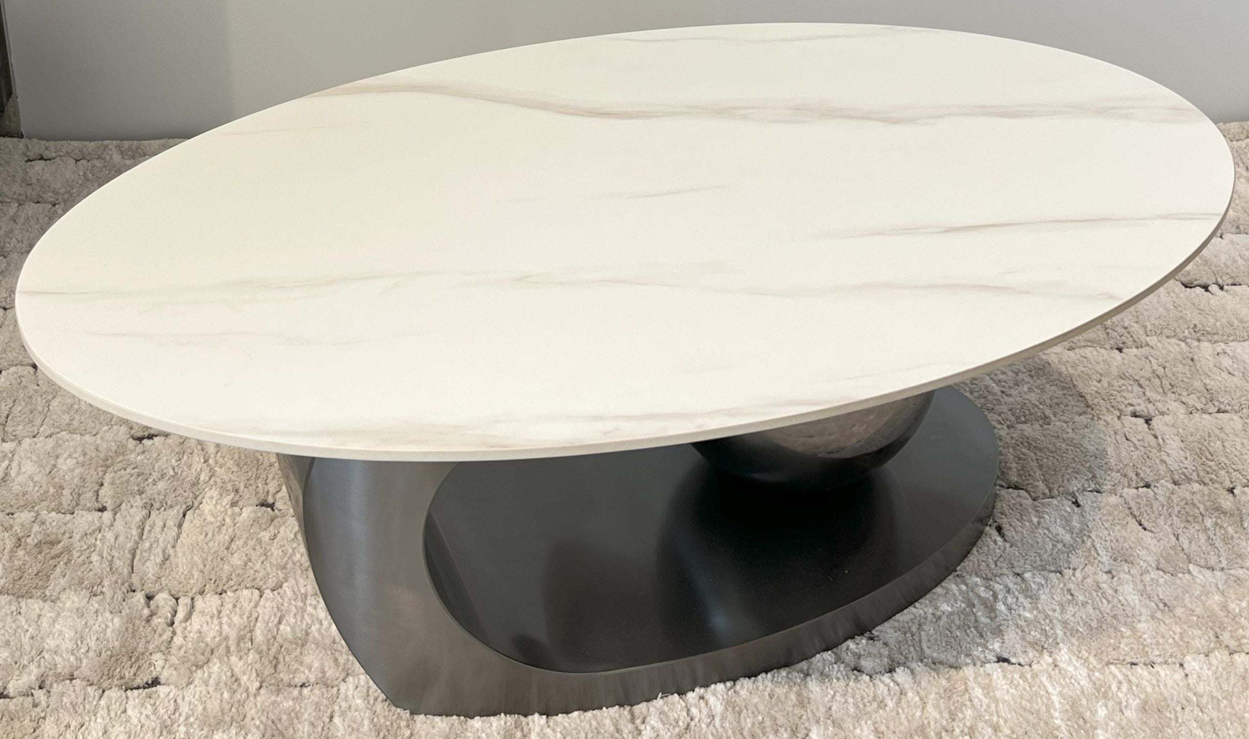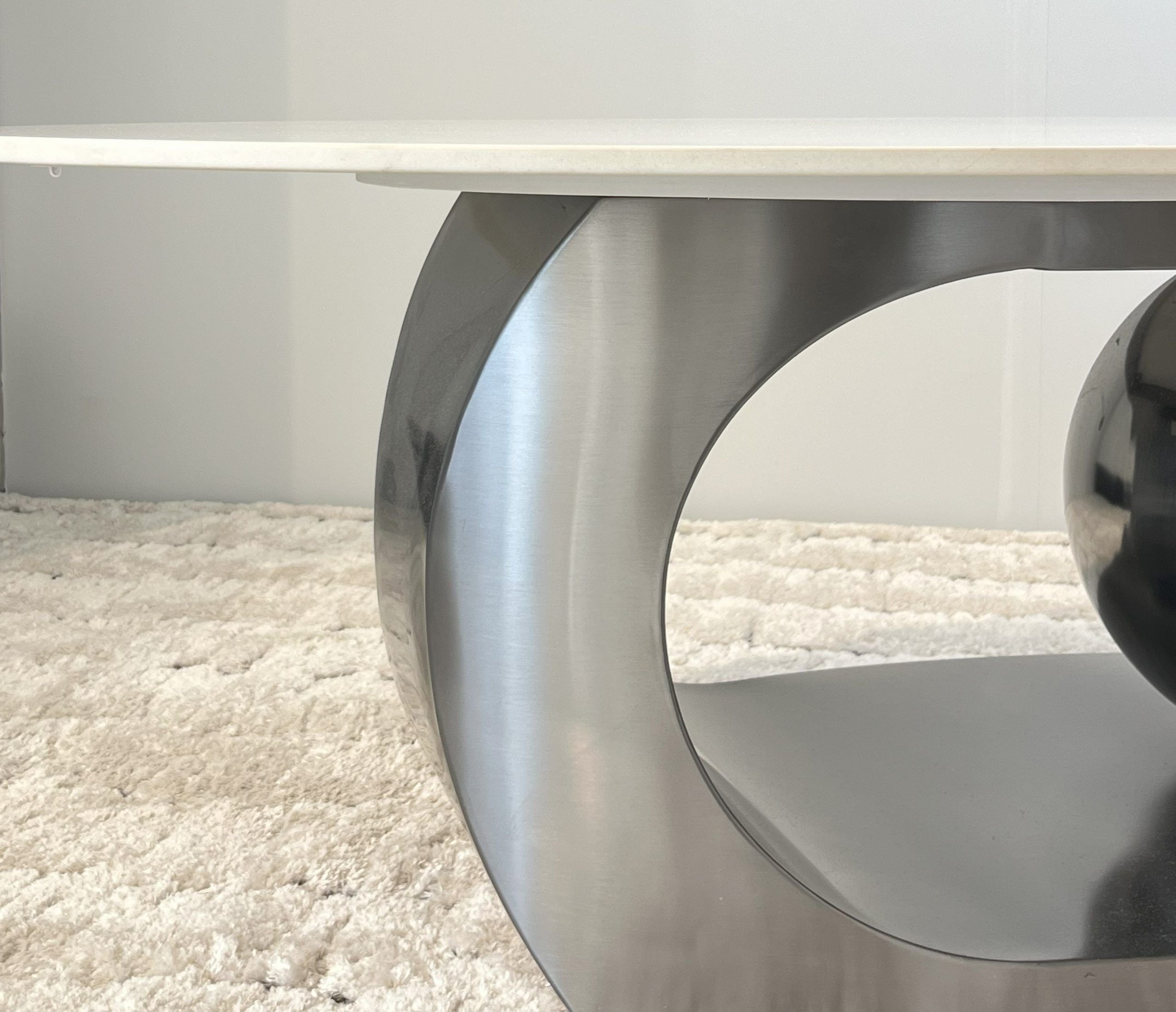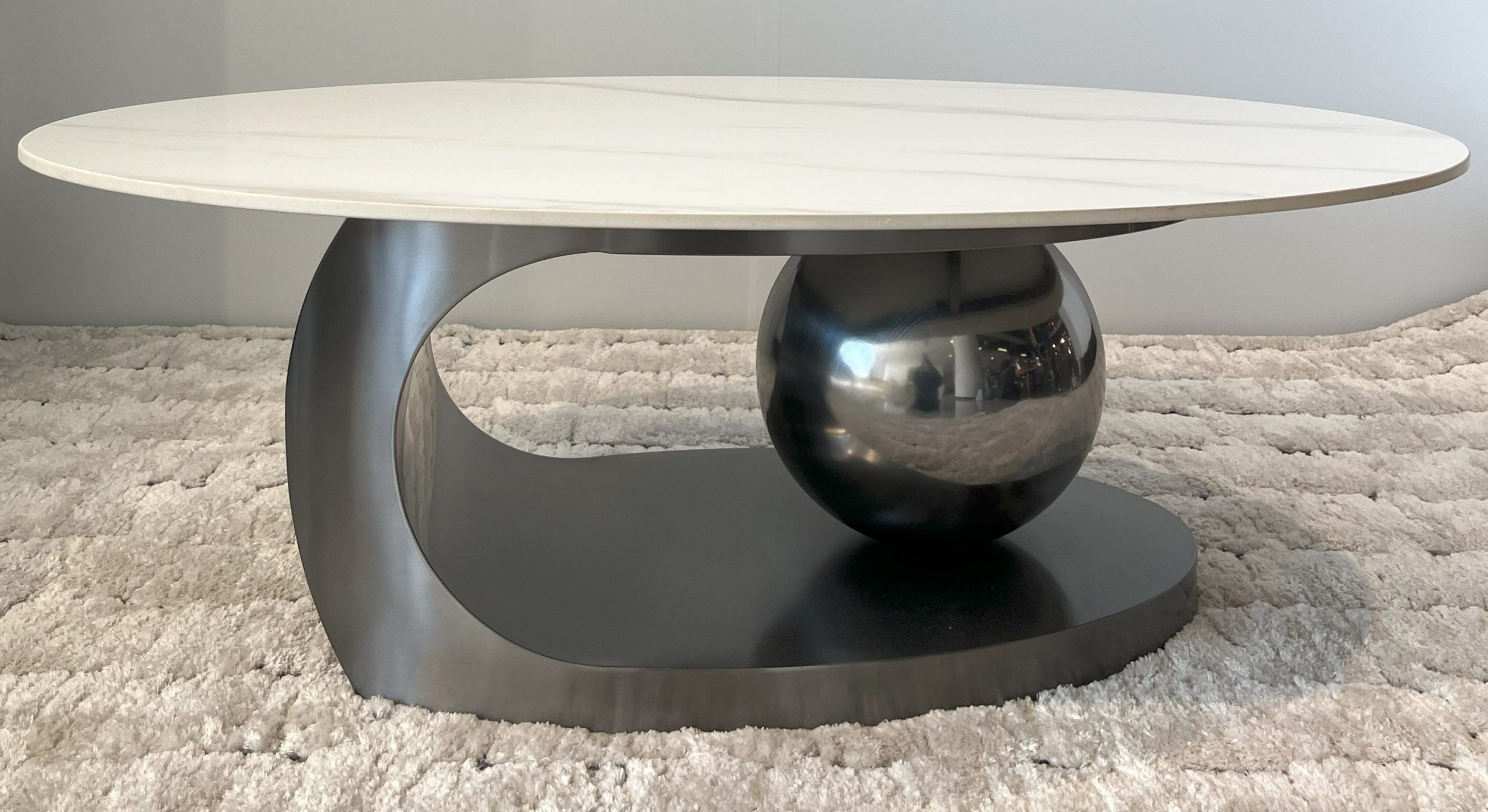 طاولة قهوة #43، سطح من الحجر الملبد/إطار من الفولاذ المقاوم للصدأ، الحجم: 120*70*41