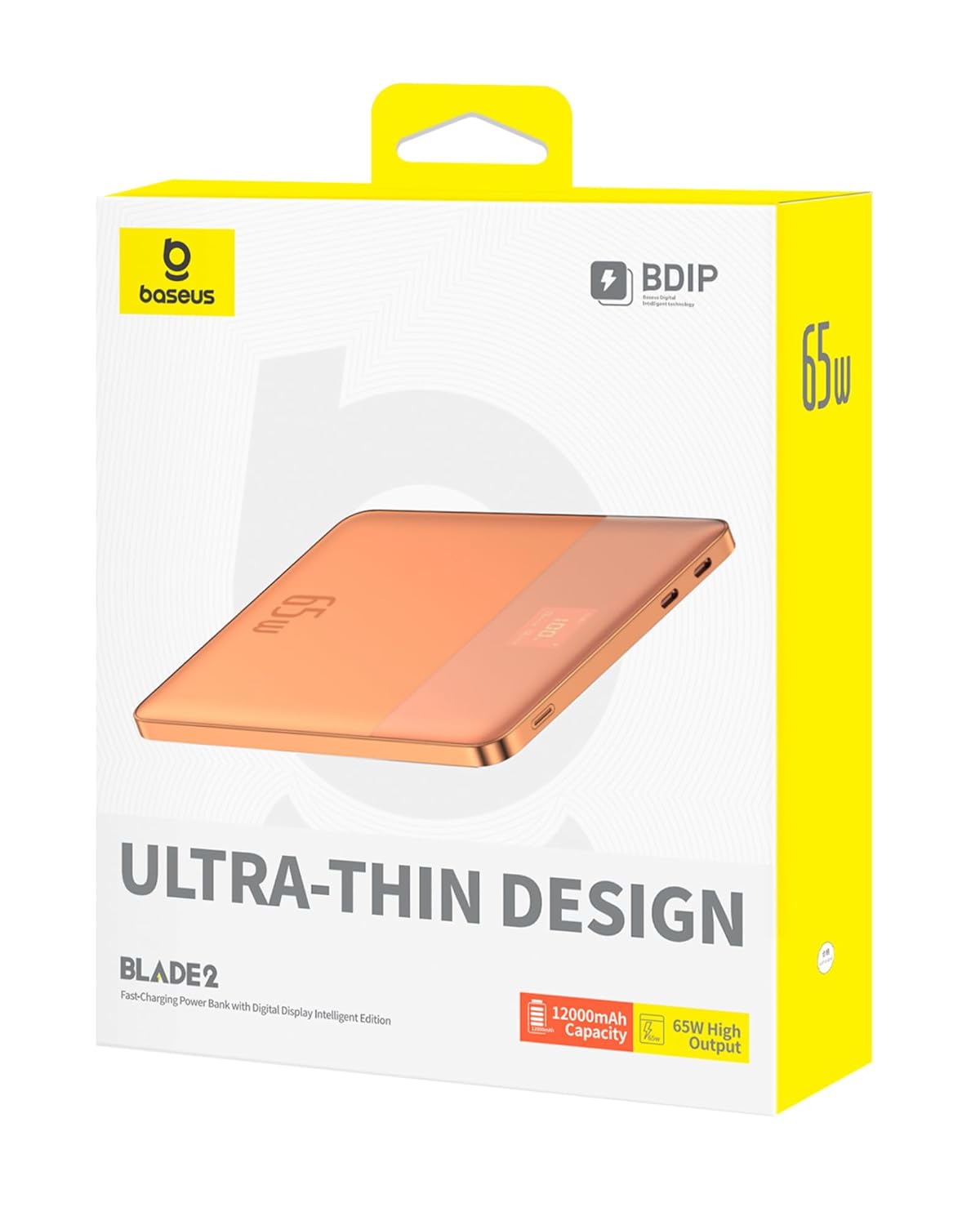 Baseus Blade2، بطارية شحن خارجية 12000 مللي أمبير 65 واط، لون مرجاني