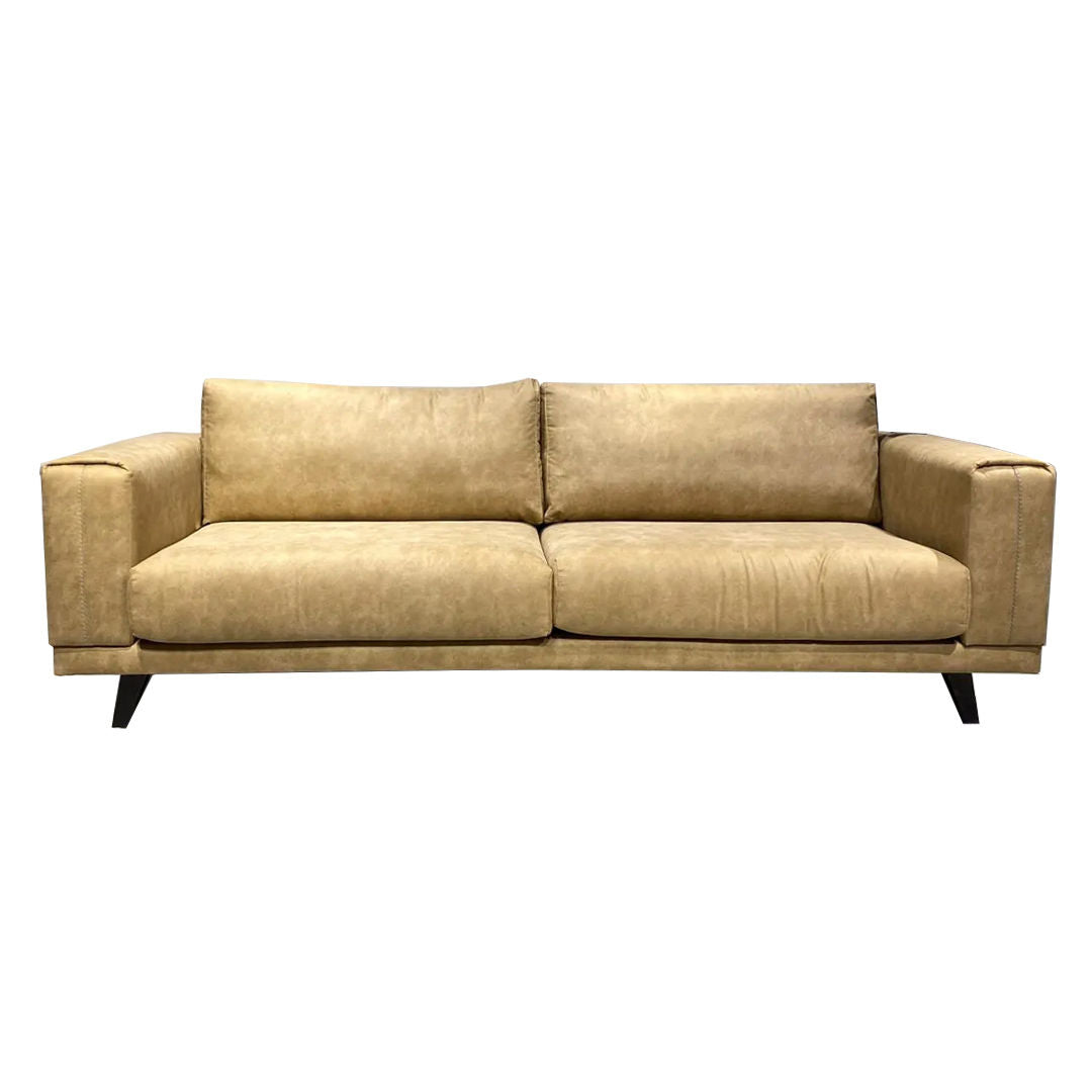 أريكة برايا ذات مقعدين، قماش بني جيب مع أرجل خشبية