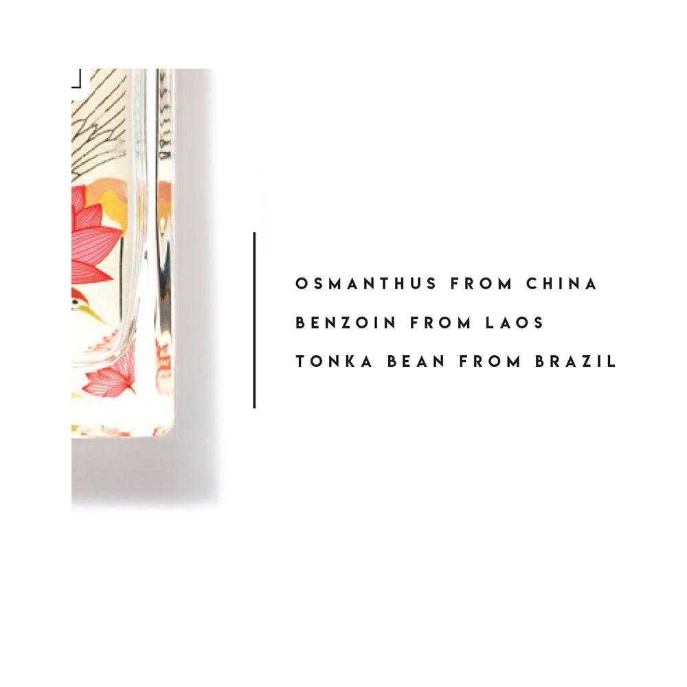 يكشف هذا العطر عن زهرة الأوسمانثوس الصينية، التي يبرزها مزيج من البنزوين اللاوي وحبوب التونكا البرازيلية.