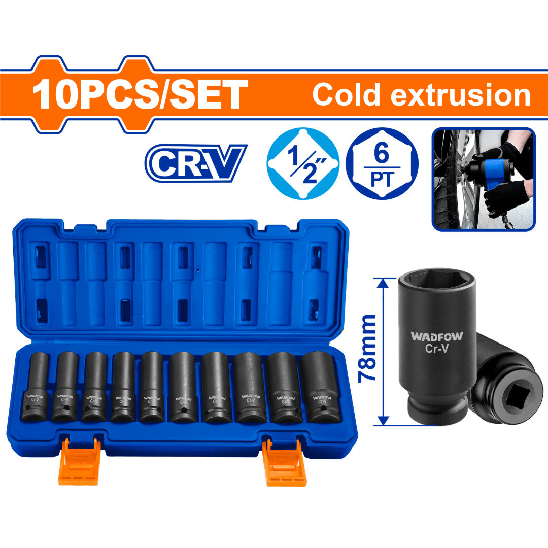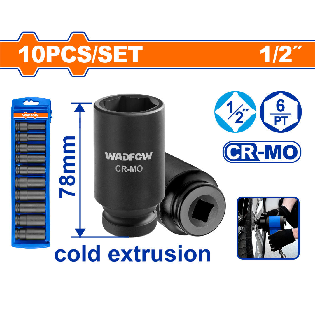 • المجموعة: مجموعة من 10 قطع لمفاتيح ربط صدمية DR مقاس 1/2 بوصة