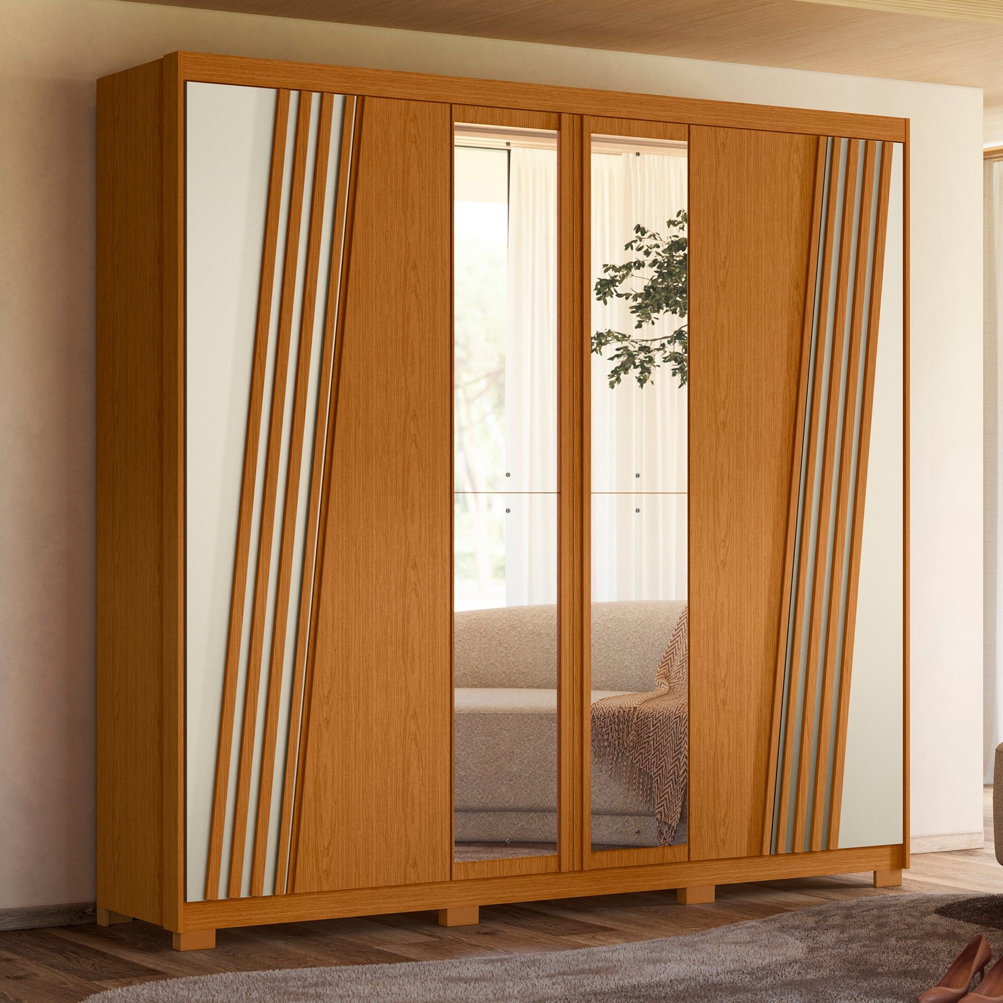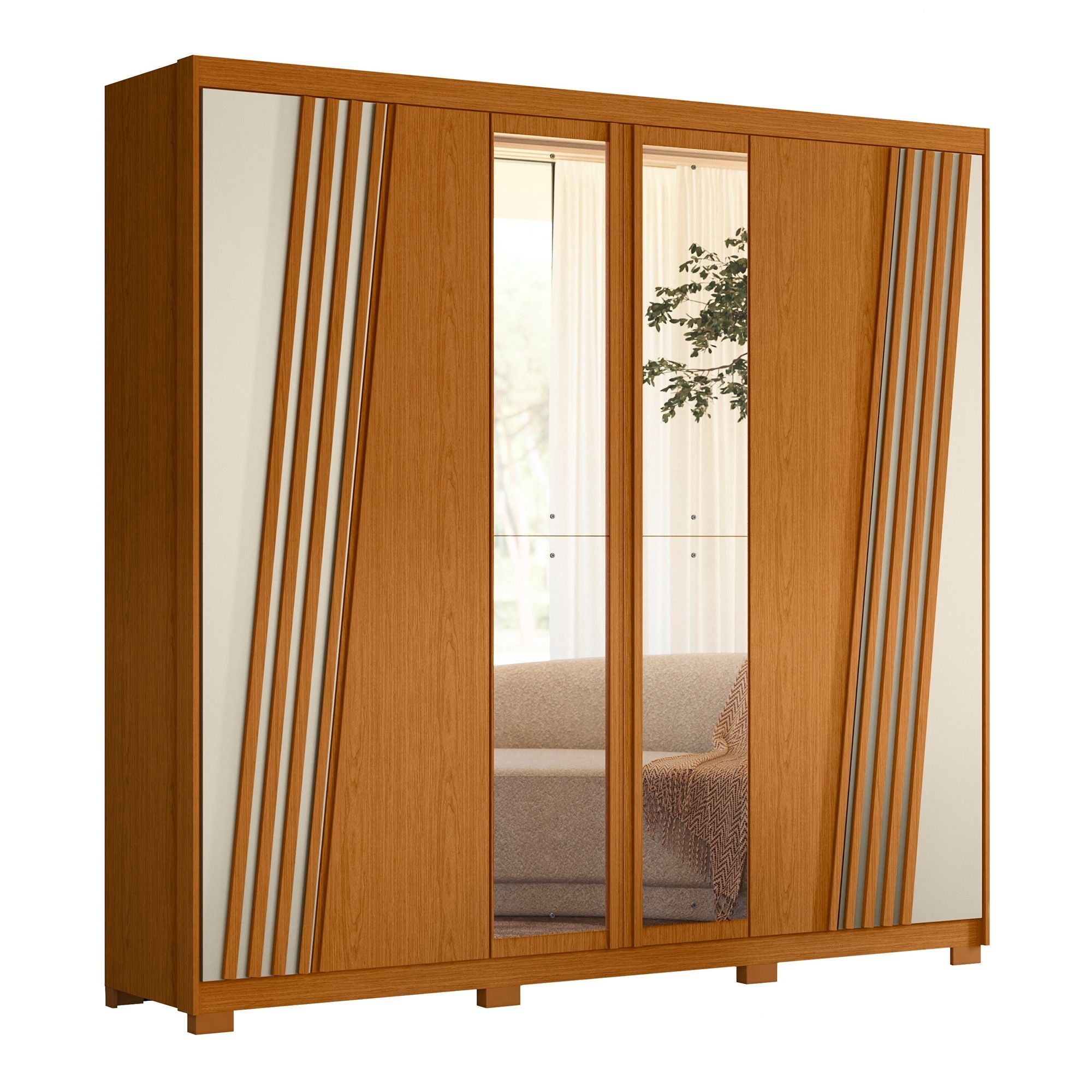 خزانة ملابس بـ 6 أبواب #OURO VERDE-205-291، مع مرآة/ 4 أدراج، اللون: قرفة