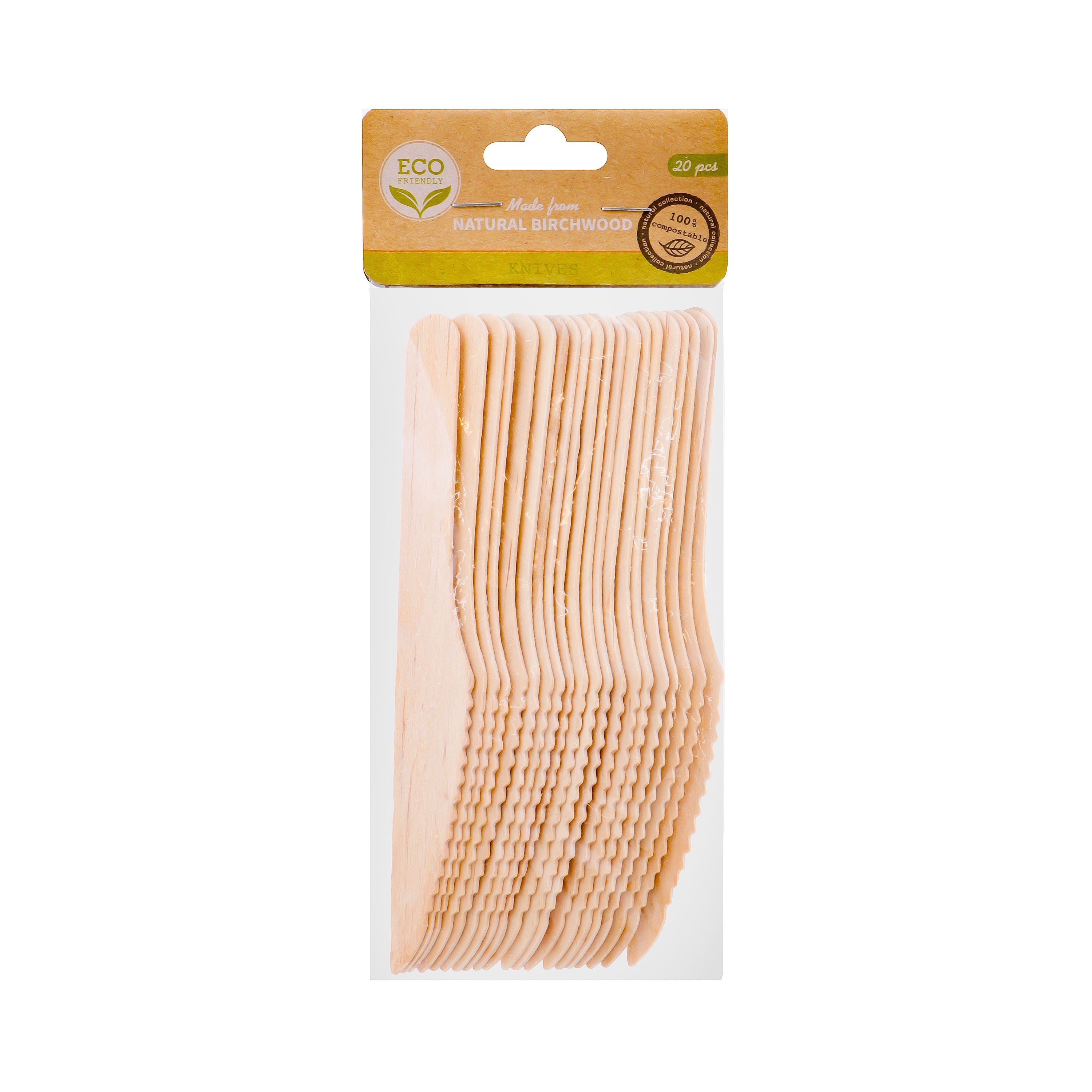 A sustainable alternative to plastic cutlery, this 20-piece birchwood knife set is biodegradable, compostable, and crafted from responsibly sourced wood. Perfect for parties, picnics, catering, or everyday use.