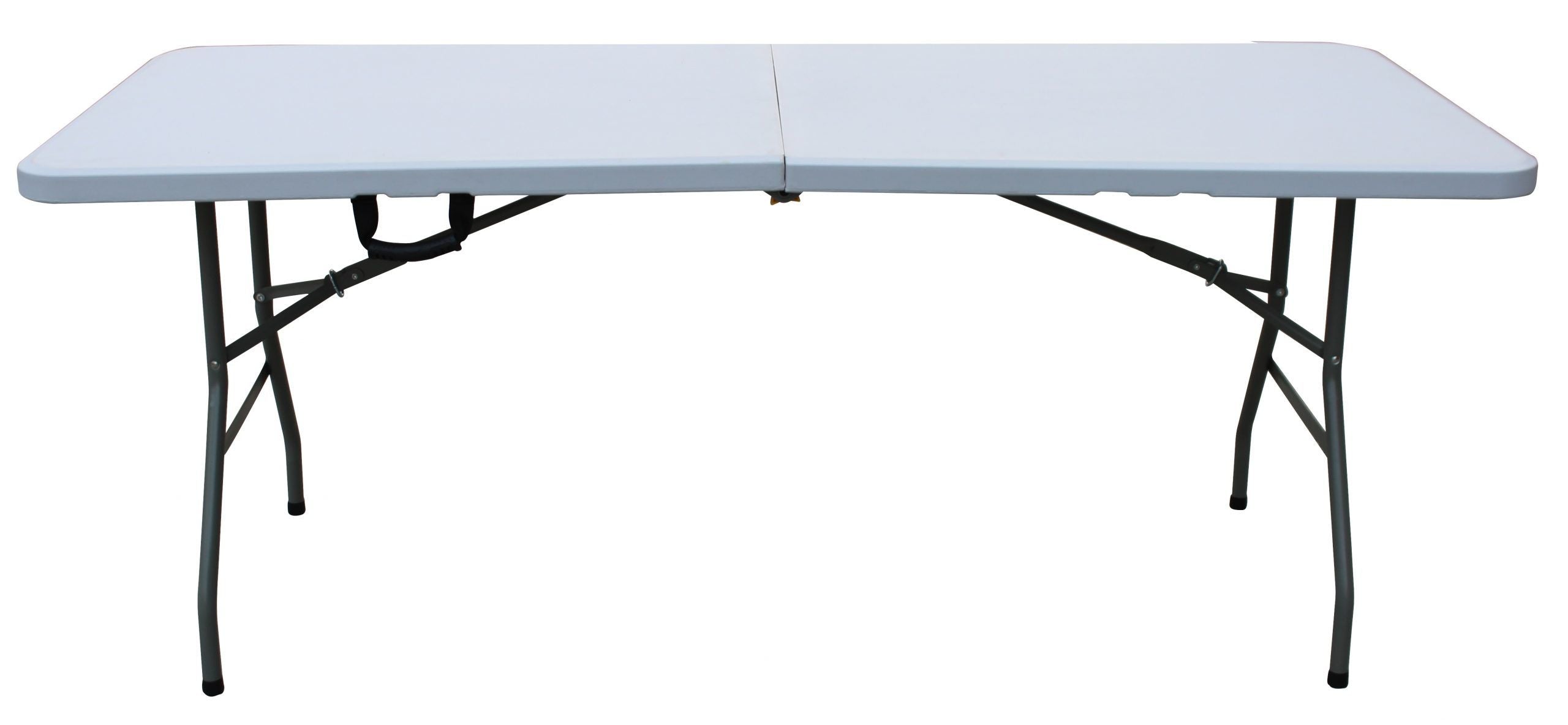 طاولة حديقة قابلة للطي من البلاستيك #HP-180CZ، هيكل فولاذي/6 أقدام، اللون: أبيض