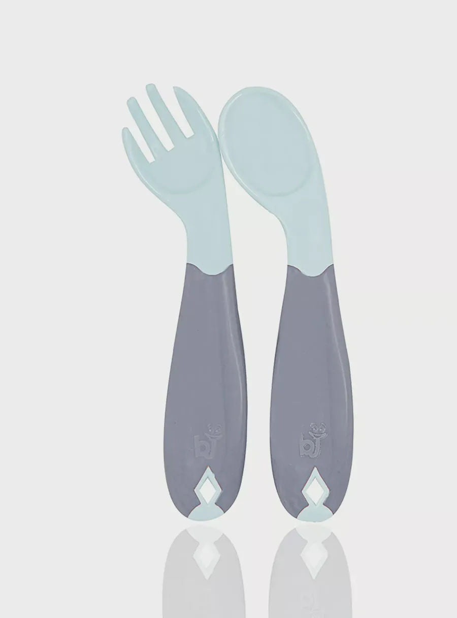 مجموعة شوكة وملعقة بلاستيكية بزاوية من Babyjem، من عمر 6 أشهر فما فوق، باللون الأزرق