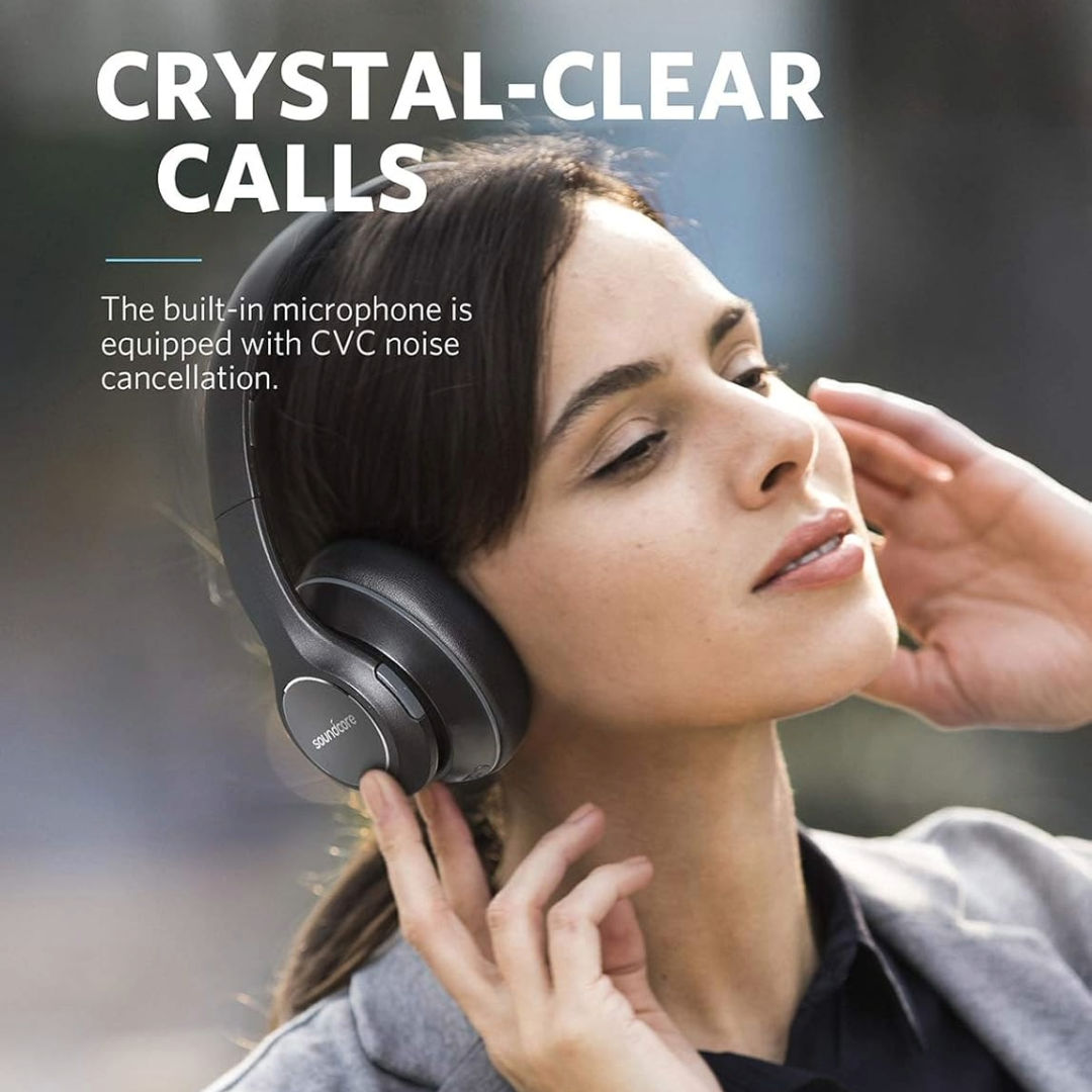 Soundcore Vortex The Over-Ear Headphones with Rich Sound and Enhanced Comfort Immersed in Music Get swept away by the music and engross yourself in rich, professionally-tuned audio with aptX high definition sound. Every aspect of your music is heightened with brilliant treble, smooth mid-ranges, and deep bass. Exceptional Playtime Vortex unites a high-performance Li-Polymer battery with Anker's leading power management technology for up to 20 hours of playtime in wireless mode. Alternatively, plug in the AUX cable for never-ending music playback. Designed for Travel Fold flat and store Vortex together with its accessories in the hard-shell travel case. Transport your headphones safely while you travel, or stay organised at home and work. All-Day Comfort Whether you're listening for 10 minutes or 10 hours, the memory foam filled ear-cups and headband offer a comfortable, secure fit. On-the-Go Calling Vortex's built-in microphone and multi-function button allow you to answer calls without removing your headphones or reaching for your phone.