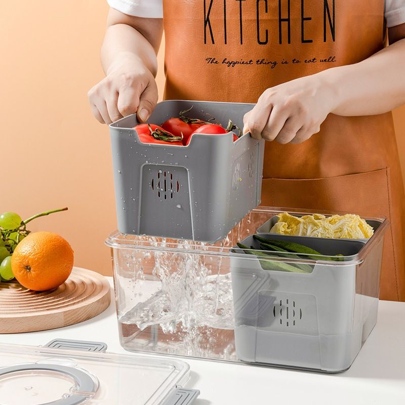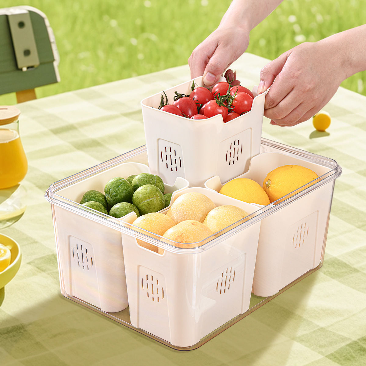صندوق تخزين محمول للفواكه والخضروات مكون من جزأين - أبيض