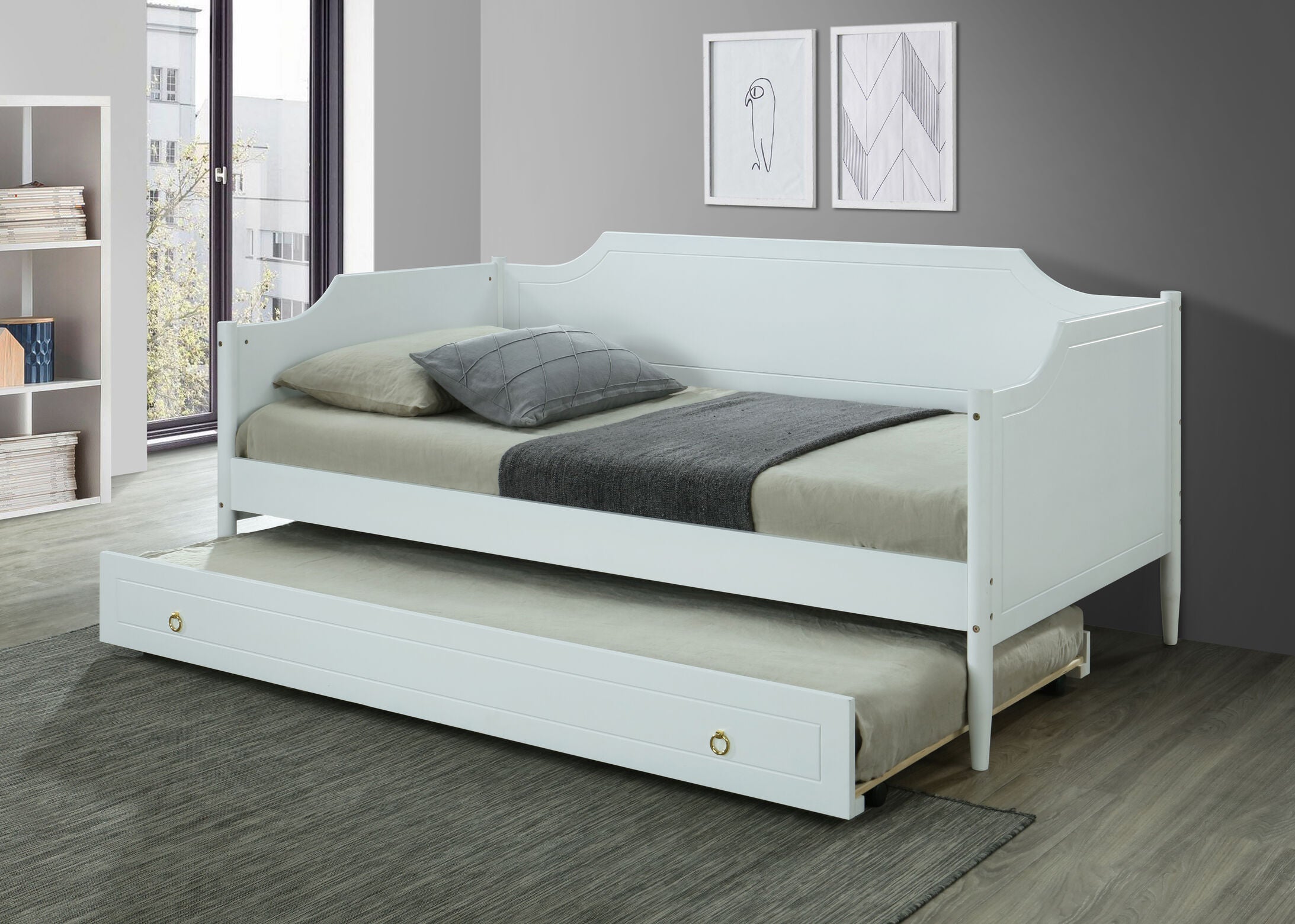 سرير نهاري مزدوج أبيض مع سرير قابل للسحب #MG0016
