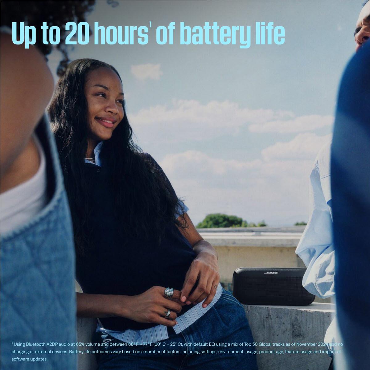 اصطحب موسيقاك إلى أي مكان مع مكبر الصوت المحمول Bose SoundLink Plus. يوفر هذا المكبر الصوتي القوي المزود بتقنية Bluetooth® صوتًا قويًا ورنانًا مع صوت جهير قوي، ويوفر ما يصل إلى 20 ساعة من التشغيل، وشحن الهاتف عبر منفذ USB-C، ومتانة في جميع الأحوال الجوية. مثالي للحفلات والسفر والأجواء اليومية.